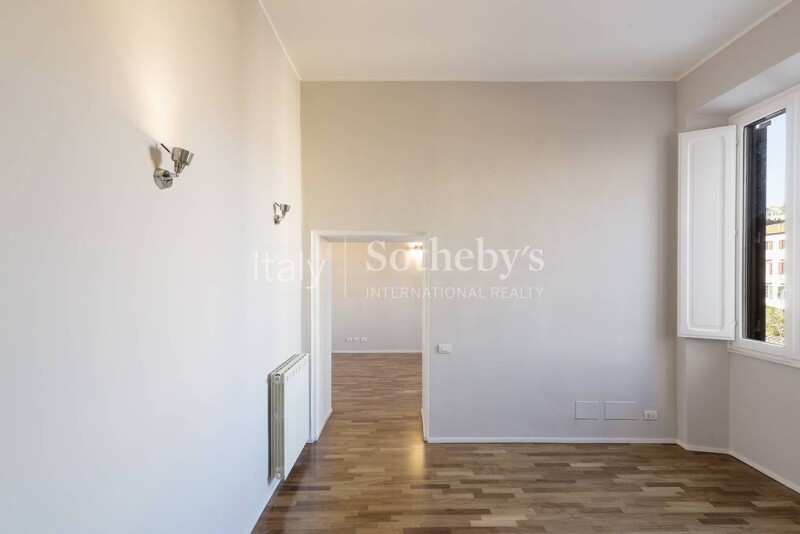 In a historic three-story building located in the charming setting of Via delle Mantellate in Trastevere, this top-floor apartment offers a unique and welcoming atmosphere. With a surface area of 82 sqm (882,641 sq ft), the apartment has been fully renovated, enhancing every detail.The interiors, warmed by wooden floors and neutral-toned walls, are enriched with modern features such as elegant built-in bookshelves, designed to optimize space with style. The kitchen, characterized by an essential and refined design, provides a functional. Each room enjoys enchanting views of Rome's rooftops, with picturesque glimpses of gardens and historic buildings. The apartment is in an optimal location, combining the lively atmosphere of Trastevere with the tranquility of a quiet and private setting. The neighborhood is full of charm and just a short distance from iconic landmarks such as Villa Farnesina and the Botanical Garden, offering the perfect balance between privacy and urban vibrancy. This is a unique solution for those seeking a charming retreat, ready to be lived in, in the heart of the capital.