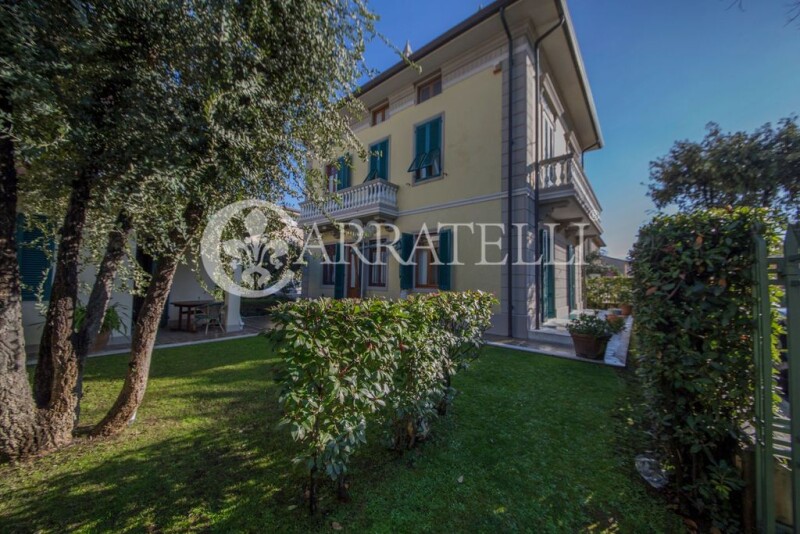 This dream villa on the sea of Lido di Camaiore – Versilia – Tuscany Coast. This beautifully restored, classic villa is located on the Versilia coast just 500 meters from the beach of Lido di Camaiore, in Tuscany, with views of the Apuan Alps. Dating from the beginning of the 1900s it was renovated in 2000 and has been very well maintained since then. It consists of a main villa of 384 m2 set on four floors with an internal elevator and a small guest house of 30 m2, surrounded by a garden of approximately 400 m2. The property has good access through two entrances and private parking. The main villa provides natural light with large windows and double doors throughout the property. The home consist on the ground floor of an entrance area with large open living/dining area with open fireplace and service bathroom, beautiful studio and kitchen. The first floor has a large master bedroom with a walk in dressing room and large bathroom. From the main bedroom, large double doors lead to a balcony. There is a small bright studio off the main master bedroom and there are an additional two double bedrooms and a bathroom with shower. On the upper floor there is a large independent apartment with an open living loft space with kitchen, two bedrooms and a bathroom with shower. The basement area is an environment dedicated to relaxation and entertaining and is composed of a built-in kitchen, large open fireplace, open plan living/dining room and laundry area with storage. There is also a walk in safety deposit room with full security door. The guest house is a small independent building with a double bedroom and bathroom with its own private terrace. In the garden of the property, located adjacent to the kitchen area, there is ample space for outdoor dining with a beautiful terraced area and an ideal area for relaxation. There is a large storage for external furniture and bikes. Camaiore 0.5 km - Forte dei Marmi 8 km - Lucca 30 km - Viareggio 13 km - Pisa 30 km - Florence 100 km.