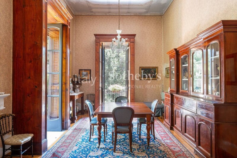 At the top of Via Posillipo, in an old historic villa surrounded by its own tree-lined park, is this elegant apartment with the charm of yesteryear. Passing the large atrium of the property, the house, on the second floor, welcomes us with an imposing gallery-like vestibule culminating in a cozy living room stretched out among the tree canopies: to the right a large formal dining room with frescoed ceiling and to the left the conversation room are served by a long balcony that embraces the 'entire representative area overlooking the green private park. Next, a hallway leads master bedroom equipped with its own bathroom while, on the opposite side, a corridor leads to the dining room, eat-in kitchen and another bathroom. The property is completed by notable outbuildings, independent cadastral units, including a large-square loft with windows and important heights, currently at rustic, that could accommodate a large studio or an other apartment, and two peculiar basements with vaulted ceilings. The property is completed by one-fifth of the entire park surrounding the villa, a share of the old shed, and the possibility of parking cars in the villa's courtyard.