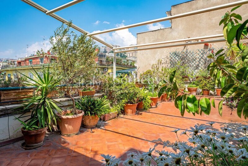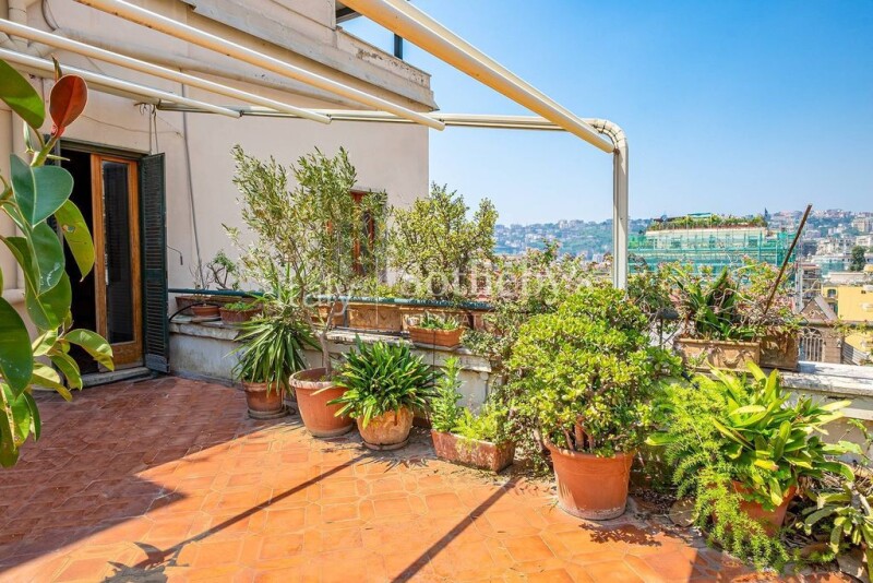 This bright, panoramic, and quiet apartment is located in the sought-after Chiaia district, close to all services, schools, supermarkets, shops, cinemas, and theaters. The apartment spans over 250 square meters and boasts an important entrance that leads into a bright living room which offers access to the kitchen and four bedrooms, all equipped with private bathrooms. The balcony which runs along the south side offers stunning views of Capri and floods the entire property with natural light. An added bonus is the lack of load-bearing structures, which guarantees maximum flexibility for remodeling of the spaces and customization of the internal layout. But the real gem of this sophisticated property is the terrace, a peaceful oasis in the center of Chiaia, perfect for relaxing or entertaining guests.