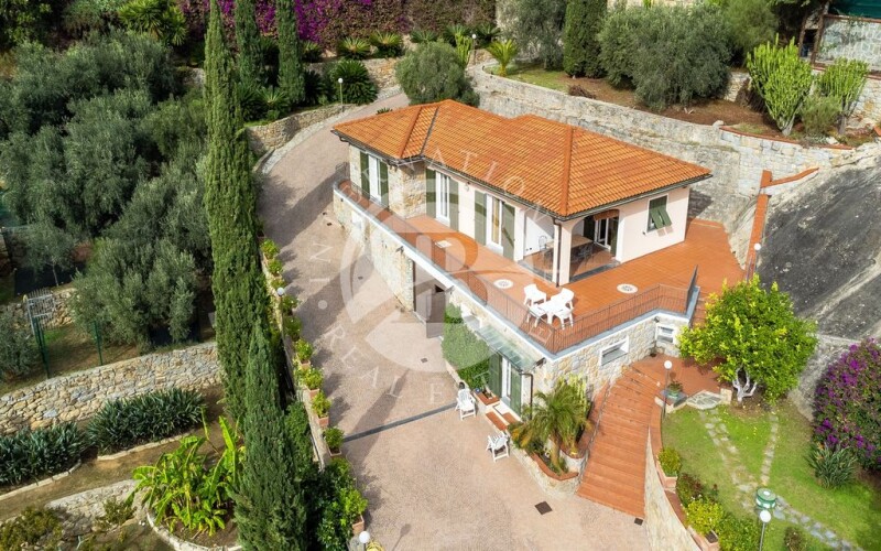 Located on via Cornice dei Due Golfi in Bordighera, this property stands out for its panoramic sea view and splendid garden. The residence comprises three distinct volumes, offering a total area of approximately 400 square meters. The first volume, closest to the pool, is arranged as follows: on the entrance floor, there is the living area with the kitchen and a bathroom, while upstairs there are three bedrooms with three bathrooms and a walk-in closet. The master bedroom provides direct access to the porch overlooking the pool and boasting a magnificent sea view. The second volume, accessed by car, features a large garage and a storage room on the ground floor. Upstairs, there are the living areas with the kitchen, two bedrooms, a study, and two bathrooms. There is also a porch on this floor, offering a splendid sea view and convenient access to the kitchen. The third volume is located near the property's second driveway access, slightly elevated above the other volumes. It consists of a studio apartment with a kitchenette and bathroom. The private garden of 2600 square meters surrounds the property, providing a tranquil and secluded environment. The swimming pool, seamlessly integrated into the greenery, adds further value. Bordighera, located on the Ligurian Riviera in the province of Imperia, is renowned for its mild climate and beautiful coastal landscape. The town, with its mix of historic and modern architecture, offers exotic gardens such as the Pallanca Garden and pebble beaches with crystal-clear waters. Nice Côte d'Azur Airport (NCE): Approximately 55 km Genoa Airport (GOA): Approximately 150 km Sea: 1 km.