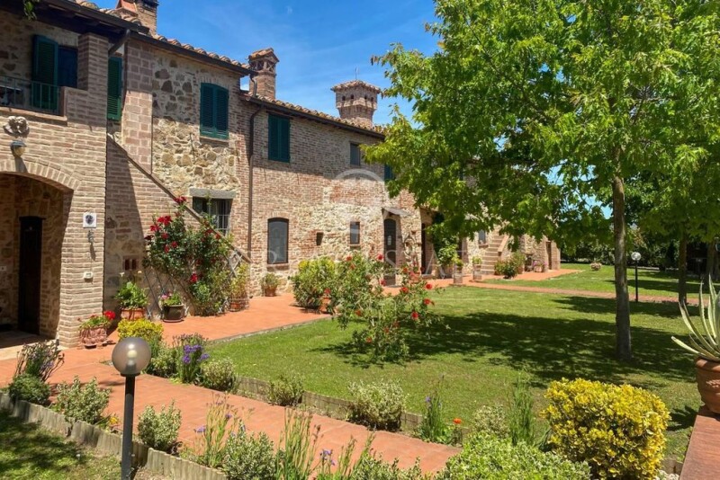 Le Rose del Lago is a splendid farmhouse dating back to the 18th century, perfectly restored, which still retains its original charm. Divided into 5 residential units, the property is surrounded by a well-kept and planted garden of approximately 3,200 sqm with a swimming pool. The farmhouse is currently divided into 5 residential units for a total of approximately 500 sqm. The main apartment is on two floors for a total of approx 200 sqm and is composed on the ground floor of a large living room with fireplace, a kitchen, a bedroom and a bathroom; on the first floor we find a second living area, a large hallway, two bedrooms and two bathrooms. The second apartment is on two levels, on the ground floor we have the living area and on the first floor there are two bedrooms and two bathrooms. The third apartment is arranged on one level on the ground floor and consists of a living room, kitchenette, bedroom and bathroom. The fourth single-level apartment on the ground floor consists of a studio apartment with bathroom. The fifth apartment on two levels with living area on the ground floor and bedroom with bathroom on the first floor. Outside there is a 3,200 sqm garden, completely fenced, well planted, equipped with a well, irrigation and lighting system and a 5.5x11 meter swimming pool. Then there is a room used as a reception of 30 sqm, an underground garage of 70 sqm and a 24 sqm warehouse. The property is sold with most of the furniture. State of repair The farmhouse, completely and expertly renovated in 2000, has beautiful external brick and stone facades, wooden window frames and shutters. Internally there are ceilings with wooden beams and joists and terracotta tiles. The finishes are of an excellent standard and the state of maintenance is excellent. The only renovation work to be carried out refers to the swimming pool and for which an estimated metric calculation has already been made. Utilities The property is served by all main utilities. The water supply is guaranteed by the public aqueduct and the presence of a well. The heating system, consisting of 3 boilers, is powered by LPG gas with a private tank. In the main apartment there is also a thermo fireplace. The air conditioning system is present in the sleeping area of the main apartment. The entire property is equipped with an alarm system. Use and Potential Uses The property was designed to be used for tourist accommodation purposes. The master apartment would allow you to live inside the structure and manage the tourist rentals of the remaining 4 residential units. Location The property is located in a semi-hilly position just 5 minutes by car from Lake Trasimeno and all services. Land registry details The Great Estate group carries out a technical due diligence on each property acquired, through the seller's technician, which allows us to know in detail the urban and cadastral status of the property. This due diligence may be requested by the customer at the time of a real interest in the property. Ownership details and eventual contractual obligations The property is registered in the name of a natural person(s) and the sale will be subject to registration tax according to current regulations.