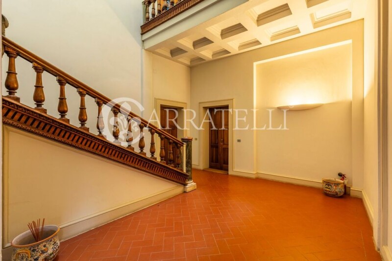 Prestigious apartment inside a wonderful historic villa with 4-hectare park, swimming pool and panoramic garden, at the gates of the historic center of Florence in a dominant position overlooking the Duomo. Description A tree-lined driveway leads to the property's parking lot. Immersed in a luxurious and elegant setting, the apartment is on two levels for a total of about 370 square meters. It offers spacious and bright rooms and welcomes on the ground floor a large and bright living room characterized by a coffered ceiling of rare beauty, finely worked and embellished with golden details, and an imposing marble fireplace, which creates a cozy and classy atmosphere. The dining room, with smaller coffered ceilings, and the eat-in kitchen complete the living area. Also on the ground floor, we find in design two spacious frescoed master bedrooms with walk-in closets and en-suite bathrooms, one of which opens onto a bright loggia with direct access to the exclusive garden. Descending the stairs leads to the basement, which has an additional living room with kitchen and fireplace, a beautiful bedroom and a bathroom, additional spaces ideal for guests or to create an independent area. Outdoor spaces The apartment has a private garden of about 1000 square meters, an oasis of tranquility where you can relax and enjoy the coolness offered by the lush vegetation. The villa is surrounded by a 4-hectare condominium park that provides total privacy and panoramic views of Florence. On one side is the magnificent Italian garden characterized by manicured paths, a central fountain and beautiful trees such as magnolias and cypresses, and on the other the pool area offers a perfect place to enjoy cool moments of relaxation and recreation. The grounds also include an olive grove, which produces about 100 liters of organic oil per condominium, and a variety of fruit trees. Two reserved parking spaces complete the outdoor amenities, making the property a perfect blend of comfort and luxury. Condition and finishes The highly prestigious historic villa features classic Tuscan architecture with Renaissance influences. The coffered ceilings, marble fireplaces and decorative details reflect the refined elegance of the past. A magnificent example of an aristocratic residence, with architectural elements that testify to its historical importance. The loggia and veranda, with their elegant arches, add a touch of sophistication and harmoniously connect the interior with the exterior, offering a unique living experience surrounded by greenery. The interiors, enhanced by parquet floors and fine finishes, express a classic and elegant taste, ideal for those seeking a representative residence. Potential for use Buying this apartment means owning a piece of Florentine history while enjoying the serenity of a residence surrounded by greenery. The breathtaking view of Florence Cathedral, the peace of the private garden and the elegance of the interior make this property unique. The proximity to the historic center, reachable in a few minutes, allows you to live immersed in the culture and art of the city, without sacrificing the tranquility and beauty of the Tuscan countryside. The ideal choice for those who want an exclusive retreat in the heart of one of the most fascinating cities in the world. Location The apartment enjoys a privileged location that combines the charm of the Tuscan countryside with the convenience of urban life. Florence, the cradle of the Renaissance, offers a wide range of cultural and artistic attractions. The neighborhood is characterized by residential calm, surrounded by historic villas and manicured gardens, offering an oasis of peace while remaining close to the services and conveniences of the city.