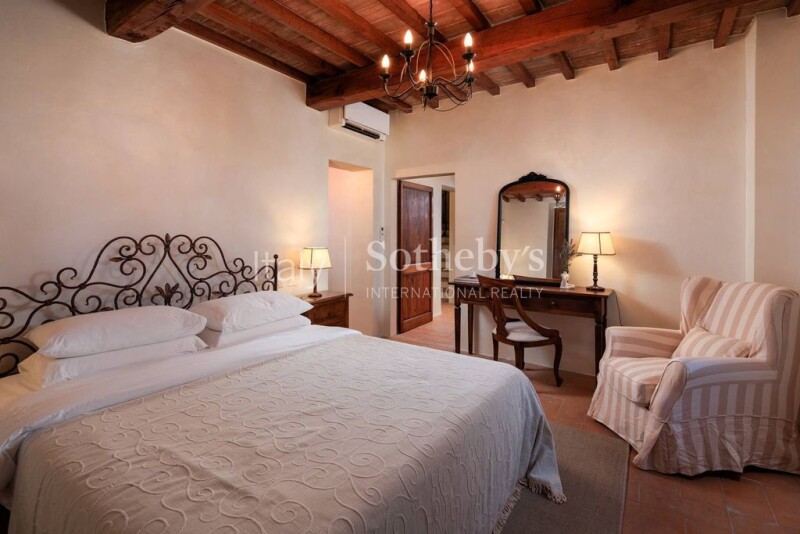 With an enchanting view of Todi, this farmhouse has been completely restored with skill and taste in 2022. Easily accessible by asphalted road to the entrance, the property is surrounded by a land of about 5 ha where there is a beautiful swimming pool, about 200 olive trees (which allow you to make your own extra virgin olive oil) and some fruit trees such as cherry trees, figs, persimmons and apple trees. In a non-isolated position, the farmhouse still enjoys maximum privacy; from the outside you can admire the work done by local craftsmen on the facade, which features the typical stone of the area; Outside we find a covered parking for three cars, with also the possibility of recharging electric ones thanks to the 6kwt photovoltaic panels, guaranteeing significant savings on consumption and expenses. The entrance opens onto the living room with fireplace, to continue into the laundry area and pantry while on the pool side there is a large dining area and the kitchen, with another fireplace; from here you access the outdoor pergola that creates a cool and shaded area ideal for hot summer days. On the ground we find terracotta floors while on the ceiling wooden beams; each stone tells the story of this property that today guarantees comfort and light. On the first floor there are four bedrooms, two with en-suite bathroom, and an additional bathroom for the other two bedrooms; on the second floor instead there is a large living area dedicated to reading, a bedroom with en-suite bathroom; two more bedrooms, a bathroom in addition to the boiler room. Air conditioning is present in all rooms; we also find solar panels that heat the water that comes from the municipal aqueduct. An oasis of peace and beauty restored with quality materials and luxury accessories, to ensure a dream stay whether for a permanent residence or for a holiday.