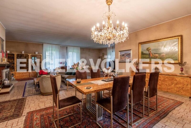 In Cardano al Campo, in one of the most renowned residential areas, we offer for sale an exclusive, elegant villa with the flavour of the most refined countryside, characterised by large spaces and a well-kept garden with tall trees. The generous size of the interior spaces makes the house the perfect solution for a family that loves large spaces with access to the outside. From the main entrance we can find a large and sumptuous hallway that introduces us to the bright double living room with fireplace from which, through glass windows, there is access to the covered portico, where you can spend moments of conviviality and relaxation even on the hottest days, protected by the shade of tall pine trees. The living room is adjacent to the kitchen, with a room currently used as a laundry room that concludes the living area. In the sleeping part of the house, we find a bright master bedroom with a spacious en suite bathroom and three bedrooms served on the floor by a shared bathroom. A convenient staircase leads to the first floor where we find a bright attic and a large multipurpose room, both with direct access to spacious terraces. On the basement floor there is a warm and spacious tavern where it is possible to dine and spend pleasant moments around the fireplace and the cosy bar corner; adjacent to the tavern is a room originally used for playing billiards. A technical room and a bathroom complete the floor. Also enriching the property are a woodshed, a wine cellar and two double-wide garages.