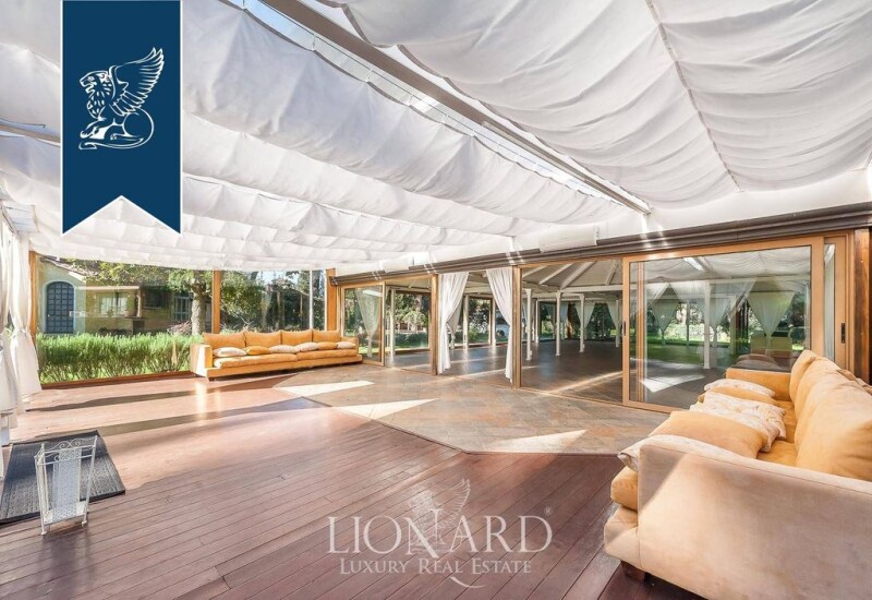 On the Appia Antica, a prestigious residential area of the renowned city of Rome, there is this magnificent luxury villa with a pool for sale. The villa's garden measures 5,660 square meters and features a splendid swimming pool with a sunbathing area, a 160-sqm gazebo, and a dining area. This splendid estate measures 860 sqm overall and consists of the main villa, which features materials and finishes of the highest quality, and three annexes. The luxurious villa has two floors: on the ground floor there is a spacious and bright open-space living area with a triple living room, featuring big windows overlooking the garden, a dining room, a kitchen, a study, a bathroom for guests and an en-suite bedroom. The first floor houses three double bedrooms with private bathrooms, access to the terrace, and two walk-in closets. The enchanting 100-sqm annex includes two double bedrooms, two bathrooms, a gym, and a Turkish bath. For sports lovers, there is a lovely five-a-side football field that completes this property for sale in Rome. Ref: 1153.