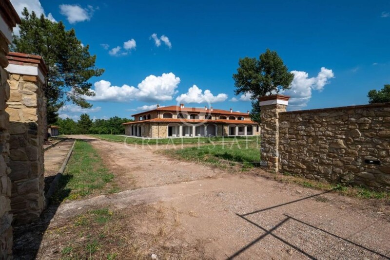 Wonderful villa for sale to be completed on two levels, with triple garage and annexe and 28700 sqm of parkland in Arezzo, very close to all services and with predisposition for systems. This villa in Arezzo is a property with great potential. It is conveniently located near all amenities. The main villa is spread over two floors and is surrounded by a large portico on the ground floor and a loggia on the upper floor, adding a covered area of 400 square meters. The property is very bright thanks to numerous windows and offers a spacious open space that can be customized according to your preferences. The property also includes two annexes: a 126 square meter garage with a triple entrance and another annex of 33 square meters with a 16 square meter portico. The property's park covers an area of 28,700 square meters and is well-suited for the construction of a pool and other outdoor usage areas. Overall, this villa offers many opportunities and space for creativity and is very appealing if you want to undertake a semi-customized project. State of repair Construction work on the property began in 2011. No systems are fully completed, but there are plumbing and electrical installations (work done in 2013/2015/2023). Underfloor heating (installed in 2020) and external piping have been prepared, as well as garden lighting, but the main control panel and various elements such as switches and plates are missing. Use and Potential Uses The property offers various solutions and can be used as a primary residence due to its proximity to all services. Alternatively, you can choose to complete the work and include the property in the tourist accommodation circuit, perhaps by also constructing a pool. Location Villa Sara is located in Arezzo, very close to all services and just 10 minutes from the historic center. The town of Indicatore is 1 km away, and the highway exit can be reached in 10 minutes by car. Florence is reachable in 1 hour, and its respective airport in 1 hour and 5 minutes. Land registry details.