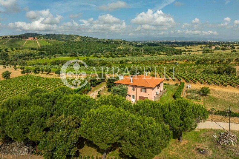Organic winery-vineyard immersed in the Tuscan Maremma countryside, a few km from the city of Grosseto, 270sqm manor villa and 27 hectares of land and outbuildings. Description The property is accessed after driving about 1km of dirt road, but easily accessible. You enter the estate through an electric gate and find a large parking space that can accommodate several vehicles. The villa is divided into two levels of about 135 square meters each. At the entrance of the villa we find a large openspace with a large kitchenette and living room with fireplace, a double bedroom and a bathroom. On the second level we can appreciate the sleeping area, with 2 large double bedrooms and another bathroom. In the basement cellar and garage. State and Finishes The property is in excellent state of renovation, is equipped with air conditioning, rooftop photovoltaic system in production and a solar panel for hot water. The floors are ceramic, the fixtures are wooden, as well as the interior doors of the villa. Large volumes that can be redistributed according to the needs of the new owner. Outdoor Spaces The villa is surrounded by large and well-kept garden and surrounded by a nice porch, ideal for outdoor dining in summer. Adjacent to the villa a shed of about 300 square meters with the complete equipment for working the fields. The land is 27 hectares divided as follows: 9.8 hectares of vineyard with irrigation system (1.5H Morellino di Scansano DOC, 4.1H of DOC Maremma Rosso, 3.1H Vermentino Doc Maremma, 1.4H of Vionier Doc Maremma),1250 beautiful centuries-old olive trees in production of Excellent Organic Oil and the remaining to arable land. Pertinent to the property there are also 3 private wells and autoclaves for water storage. Potential uses The property is ideal for a family who wants to live in the tranquility of the countryside, while remaining a few kilometers from the city and all in services. Location The excellent and strategic location allows you to reach the city in a few minutes by car and the beaches of the Maremma coast. Nearby we find the city of Grosseto, Castiglione della Pescaia at 30 minutes and the beaches of Argentario at 40 km.
