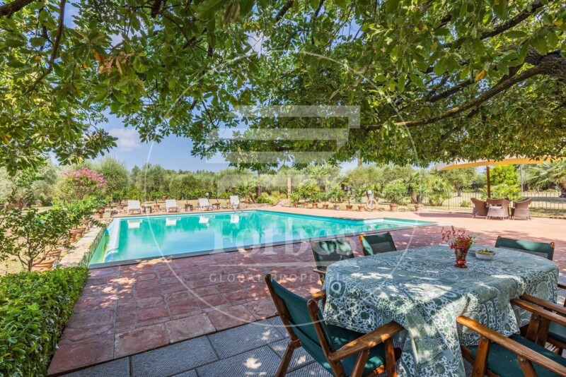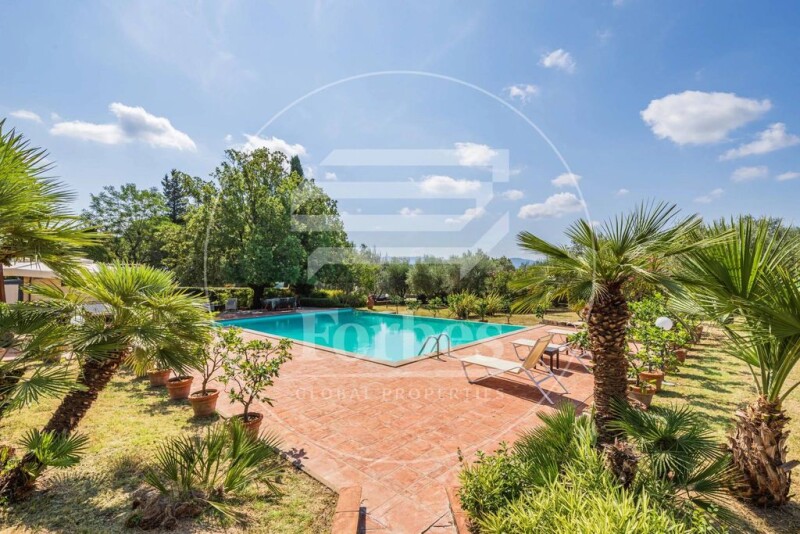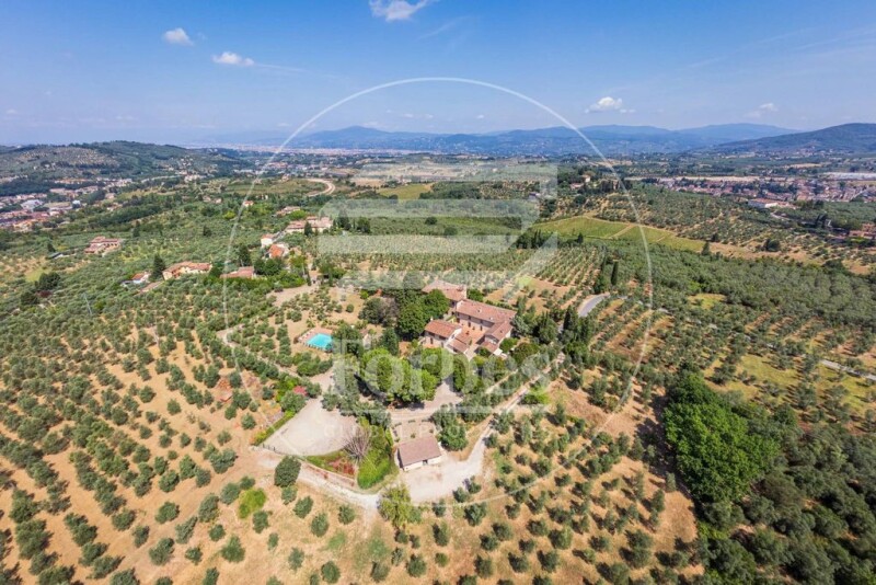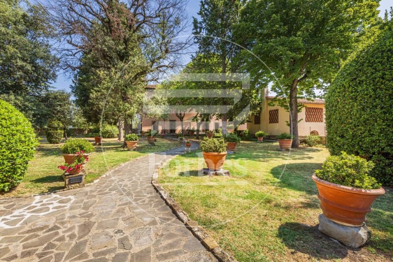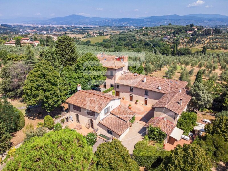 This extraordinary Renaissance villa, meticulously renovated in the 20th century by the current owner, is an architectural gem set in an unparalleled setting of beauty, just a short distance from Florence and the area’s renowned international schools. Its prime location makes this property ideal for families with children attending international schools, offering the perfect balance between family life and urban convenience. The property consists of two main buildings: the charming Fienile, currently used as an office, and the magnificent Villa, divided into four distinct residential units: the Main Residence, the Former Stables, and the Former Olive Mill. The Main Residence spans three floors, connected by elegant stone staircases and a modern elevator. The ground floor houses spacious cellars, a laundry room, a bathroom, and utility rooms. The first floor, also accessible directly from the garden, features three grand living rooms with vaulted ceilings, a large kitchen with dining area, and a bathroom. The second floor hosts the sleeping quarters, including two bedrooms with en-suite bathrooms, three additional bedrooms with a shared bathroom, and a loft, accessed by a wooden staircase, with two more bedrooms and a bathroom. The bathrooms and kitchen are furnished with high-end Barthel furniture. The Former Stables have been converted into two refined apartments, currently occupied by the family. Apartment 1: on the ground floor, a large living room, kitchen, bedroom, and two bathrooms; on the first floor, a second bedroom. Apartment 2: on the ground floor, a kitchen and a small cellar; on the first floor, two bedrooms and a bathroom. The Former Olive Mill is an independent residence spread over three floors, with a living room, kitchen, and dining room on the ground floor, three bedrooms (currently furnished as offices) and two bathrooms on the first floor, and an additional bedroom on the second floor. This prestigious property is completed by an enchanting garden with a swimming pool and approximately 14 hectares of land, including 0.5 hectares of arable land, 3.8 hectares of vineyard ready for replanting, and 9 hectares of olive groves, which surround the villa in an oasis of tranquility and privacy. This villa represents a unique opportunity for those seeking to live in a historic residence in one of the most beautiful areas of Tuscany, without sacrificing proximity to Florence and the region’s top international schools.