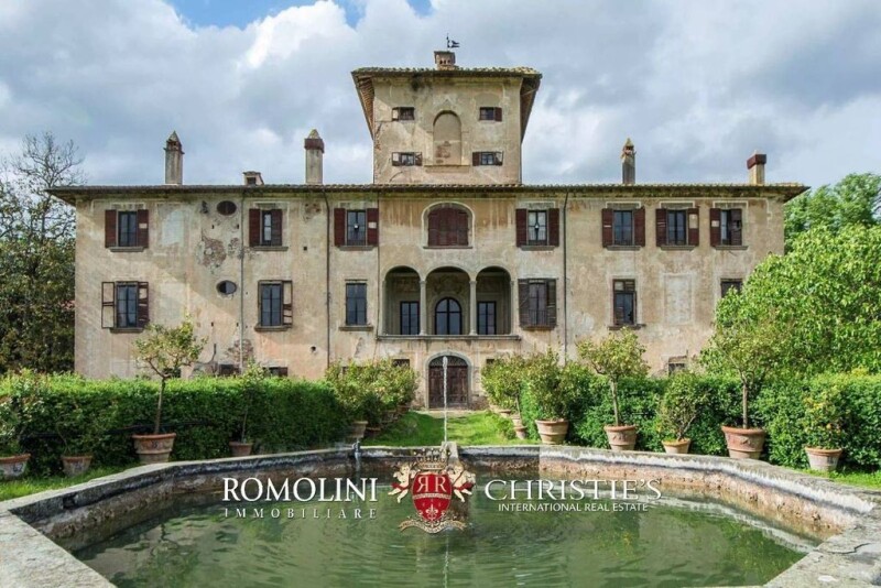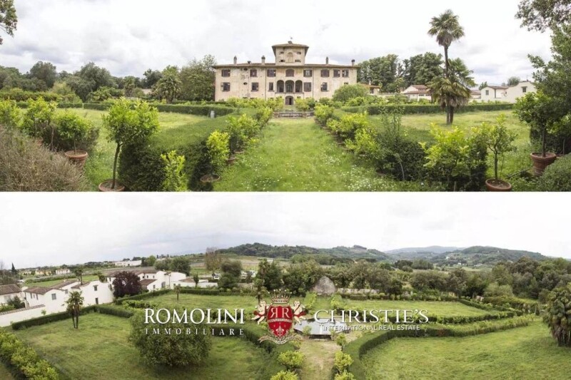 In Tuscany, in Pistoia, historic 14th-century villa with garden and 4.0 ha of land. The property is within easy reach of the most important tourist towns in Tuscany, such as Florence (43km), Lucca (47km), Pisa (61km) and San Gimignano (90km). A few km from the property there are two famous thermal towns, Montecatini Terme and Monsummano Terme; the Versilian coasts are almost one hour’s drive away. It takes just under one hour to get to Florence airport, fifty minutes to get to Pisa airport and approx. one hour and fifteen minutes to get to Bologna airport. DESCRIPTION OF THE BUILDINGS The property is composed of a master villa dating back to the 14th century plus several other buildings available with separate negotiations. The villa (2,400 sqm – 25,824 sqft) has a rectangular layout and is laid out on three levels plus the central tower. You can get to the piano nobile via an external stone staircase with balustrade; the secondary façade looks onto the private garden and boasts an elegant loggia. On the ground floor there are service rooms, among which the carriages house and the large kitchen with monumental fireplace. All the staterooms on the piano nobile have wooden coffered ceilings with decorated beams and frescoed walls. The second floor include private rooms and bedrooms with coffered ceilings; under the central tower there is a room used as walk-in closet. According to the recovery plan, the ground floor and the first floor will be used for tourist accommodation, while the second floor will be for residential use. STATE AND FINISHES The building was built in 1318 and converted into a small fortress some years later. When the plague struck Florence in 1478, Lorenzo the Magnificent was hosted in this villa. In the second half of the 17th century the villa was radically transformed and the Italian garden as well as numerous service buildings were created. It seems that Napoleon stayed in this villa for a short period; on the second floor of the villa there is still a hall dedicated to Napoleon. Over the course of seven centuries the villa has belonged only to two families, whose crests are still visible on the Northern façade. EXTERIOR The property is surrounded by 4.0 hectares (or 9.8 acres) of land. The external area includes the Italian garden, a green area for public use (4,530 sqm) and a green area for private use (29,765 sqm). The Italian garden dates back to the late 17th century and it has a surface of 4,000 sqm. In the garden there are flowerbeds, paths, a large stone fountain in the center and a lot of lemon plants. Moreover, the property includes a parking area of 900 sqm. USE AND POTENTIAL USES Given its dimension, its location and its high historic value, the villa can be used as prestigious private residence and luxury tourist accommodation. WHAT ELSE CAN BE BOUGHT? The villa with the gardens is available for sale for 1.200.000 Euro but other buildings could be bought to further enlarge the property. In the orangery (720 sqm – 7,747 sqft) there is room for more than three thousand plants. A part of the orangery, with a surface of approx. 160 sqm will host exhibitions and didactic activities. In an area of about 300 sqm there will be room for the lemon plants of the Italian garden. The remaining part will be used as tourist accommodation. The Italian garden is shared with the main villa. The orangery can be bought for EUR 600.000 Euro. Two apartments (respectively 148 sqm – 1,592 sqft and 170 sqm – 1,829 sqft) are available for sale separately, respectively for the prices of 350.000 Euro and 200.000 Euro. CLOSEST CITIES AND TOWN†S Pistoia (3km; 10’), Montecatini Terme (19km, 20’), Florence (43km; 45’), Lucca (47km; 40’), Pisa (61km; 55’), Viareggio (72km; 55’), Forte dei Marmi (78km; 55’), San Gimignano (90km; 1h 15’), Livorno (90km; 1h 5’), Siena (108km; 1h 20’), Arezzo (117km; 1h 20’), Bologna (119km; 1h 30’) CLOSEST AIRPORTS Firenze Peretola (32km; 25’), Pisa Galilei (75km; 50’), Bologna Marconi (116km; 1h 15’), Perugia Sant’Egidio (201km; 2h 10’), Milano Linate (312km; 3h), Roma Ciampino (328km; 3h 10’), Roma Fiumicino (345km; 3h 20’).