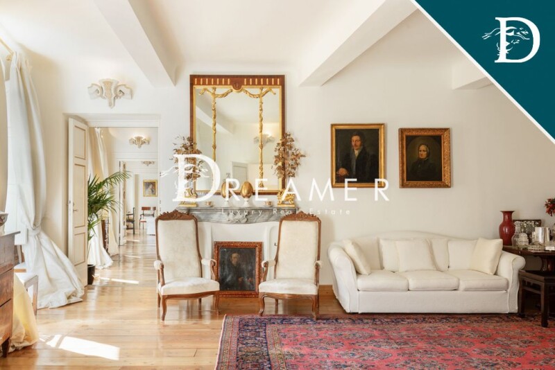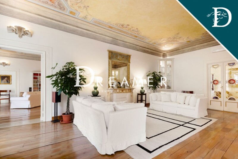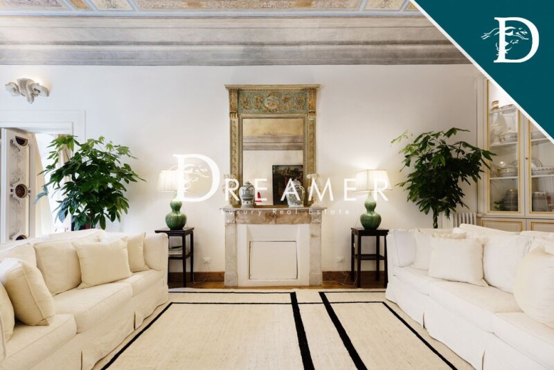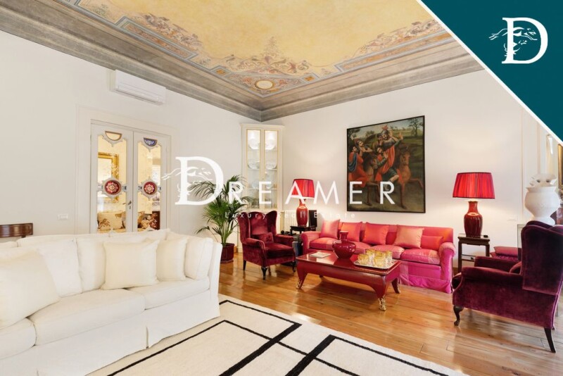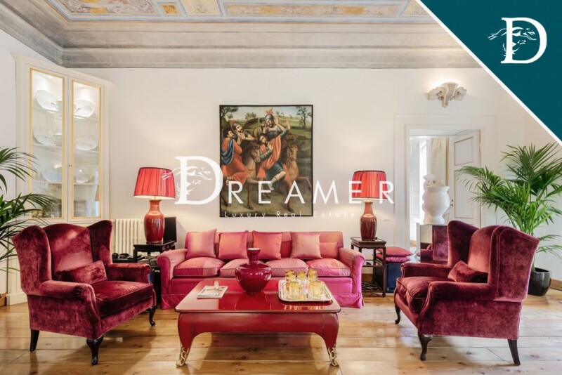 Prestigious frescoed apartment with terrace and parking space for sale in Oltrarno, in one of the most prestigious streets of Florence. The property, unique in its kind, is located on the second floor of a historic building recently renovated to enhance its façade and elegant internal staircase. With a total surface area of 400 sqm, 3 bedrooms and 5 bathrooms, the property is very bright and offers large, elegantly renovated spaces, high quality finishes, refined details and state-of-the-art systems. The living area spaces include a bright double living room, a refined dining room and a modern eat-in kitchen with direct access to the terrace. The current dining room lends itself perfectly to being transformed into a large wardrobe, a gym or any other room, furnished according to the buyer's needs. Enjoying a double entrance and having a second kitchen perfectly equipped with cutting-edge design solutions, the apartment can be divided into two separate real estate units simply by paying the municipal charges. The sleeping area includes 3 double bedrooms (one of which is currently used as a kitchen), and 4 bathrooms plus 1 service bathroom. As can be seen from the furnished floor plan, the second kitchen could easily be converted into a third double bedroom with double window, while the current pantry serving the second kitchen could be transformed into a convenient walk-in closet. This exclusive property is completed by a terrace ideal for moments of relaxation outdoors, as well as a convenient parking space for city cars. Recently renovated, the apartment is in excellent condition thanks to a meticulous restoration project that involved the use of refined materials: oak parquet, bathroom finishes in fine marble, restored frescoes, and original doors brought back to their former splendor. Among the technical equipment of the property we find two latest generation boilers, a new air conditioning system and an internal security system with cameras. The double-glazed windows ensure maximum tranquility inside the apartment, while the armored doors guarantee maximum security, including access to the terrace. This apartment represents a unique opportunity to experience Florence in an exclusive location equipped with every comfort, in one of the most exclusive noble palaces in Florence among frescoes and large volumes. REF.13666.