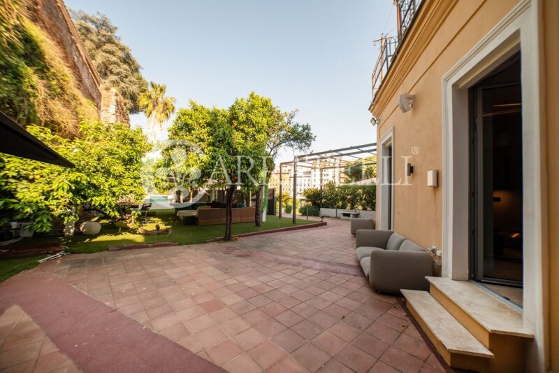 We are pleased to present this extraordinary residence in the heart of Rome's historic center, in the charming Celio district, just a few steps from the Colosseum and the Baths of Caracalla. This impeccable apartment, equipped with high quality finishes, is now available for sale and boasts a large exclusive garden and a panoramic terrace. Location and Lifestyle This exceptional property is located in the Historic Center of Rome, overlooking the lush gardens of Via Sannio. Set within a structure dating back to 1856, once managed by Pietro Cardella, this residence offers an atmosphere steeped in history and magnificence. This sumptuous residence represents a unique opportunity for those who wish to own not just a home, but an authentic piece of eternity. Description The 650-square-meter interior of the apartment is on one level and is distinguished by its spacious interior and exterior spaces, ideal for year-round living. The well-kept garden and large sun terrace make this a magical place, perfect for enjoying the hot Roman summers. Condition and Finishes The property has been completely renovated and is an authentic real estate gem thanks to the extraordinary combination of Roman period details and modern technological comforts. Among the optional extras, the indoor spa and wellness area stands out, characterized by a modern style that harmonizes perfectly with the whole residence, equipped with swimming pool, relaxation area, Turkish bath and sauna. Potential Uses This unique property has been used primarily as a private representative residence, but its potential uses are manifold. It is the ideal investment for those who wish to start a hospitality business in such a prestigious area, but also for those who dream of living in a refined main residence. This property offers a unique combination of history, luxury and versatility.