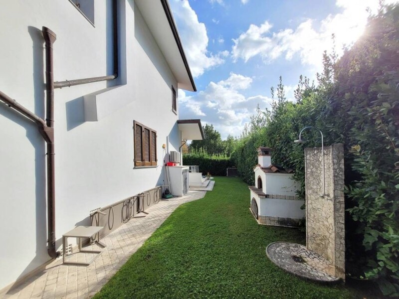 Rif.Ag. 262 - A few steps from the beaches of Marina di Pietrasanta, in a private position, with access via an internal private road, this villa is in an excellent state of maintenance and represents a splendid solution both as a main residence and as a holiday home. The beautiful porch leads directly to the living area, made up of a large open space that houses the living area with fireplace and the dining area. To complete the ground floor, the large kitchen with central island and a closet under the stairs designed to house a service bathroom. The sleeping area, on the upper floor, includes a double bedroom, a medium bedroom and a third bedroom, as well as two bathrooms, one with a shower and one with a bathtub. The flagship of this property is undoubtedly represented by the beautiful swimming pool of about 4 mx 12 finished in mosaic and travertine and equipped with a hydromassage area. The technical room of the pool has very convenient access and also houses a bathroom with shower. In addition to being in perfect maintenance conditions, this villa is free and available IMMEDIATELY.