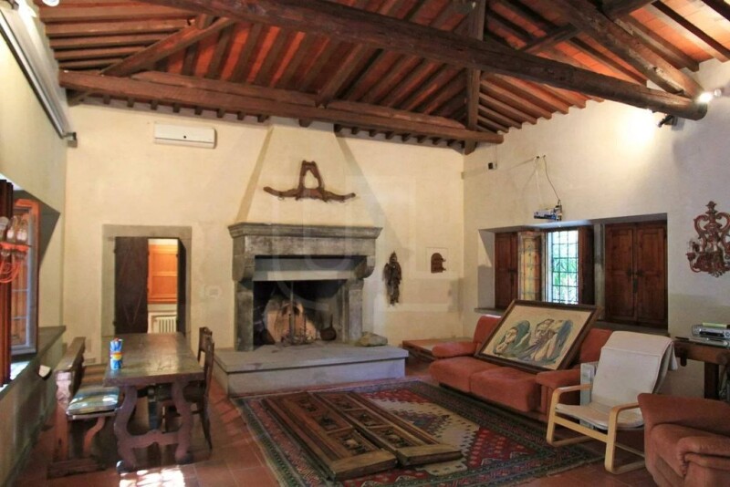 Luxury historic villa located in a panoramic position, only 5 minutes from Florence. Set on 10 hectares of land consisting of a 14th century villa and 2 outbuildings on two levels. The access road to the estate winds through 10 hectares of typical Tuscan countryside, with a harmonious path that allows you to reach both the large square in front of the main villa and a large parking area and the annexes. Along a path with vine pergolas you reach the heated swimming pool with an adjacent wooden structure that houses the Thai sauna with massage area. The property also features a tennis court and billiard room. Additionally there area woods, olive groves with 1000 olive trees, vineyards and fruit trees and 2 wells. A conservative restoration has been carried out with particular attention to the historical period. The 1000 sq.m main villa is distributed over 3 levels and comprises an entrance hall, lounge, dining room, 2 kitchens, double living room, sitting room, 4 bedrooms, dressing room, 4 bathrooms, 2 terraces and attic bedroom. This splendid property is located in a truly strategic position; the motorway exit is 2 km away, the airport 5 km, Ugolino Golf Club 10km, Monte Abetone ski resorts 48 km, Terme di Montecatini 35 km, Lucca 55 km, Pisa 70 km, Siena 60 km and the sea of Forte dei Marmi 75 km.