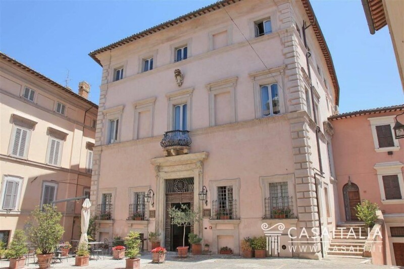Location The Noble 17th-century House is located in the heart of the historical center of Trevi, one of the loveliest and most typical towns in Umbria, surrounded by green hills carpeted with olive trees and overlooking the entire valley that stretches from Spoleto to Perugia. The property consists of an ancient noble building on several levels and a part of the adjacent building, currently a hotel. We are in Umbria, strategically located near the most important historical towns in the region: thanks to to the highway, only a 5-minute drive away, Foligno (10 km), Spoleto (15 km), Assisi (24 km) and Perugia (39 km) are all very easy and quick to reach. The nearest airport is Santo Egidio, at Perugia (39 km), while the international airports of Rome, Fiumicino (Leonardo da Vinci) and Ciampino, are 189 and 161 km away, respectively. Description of buildings The hotel occupies the main building and a part of the adjacent construction, and includes: ·31 suites ·reception ·breakfast room and common areas ·restaurant ·professional kitchen ·meeting rooms ·spa area ·terrace ·swimming pool ·other service areas. Condition The buildings have been thoroughly remodeled and are in perfect conditions. The main building preserves the architectural characteristics of the 17th century: on the ground floor, a wide, vaulted corridor gives origin to the access ramps for the upper stories. Elliptical canopies cover the stair landings that give access to the noble floor, subdivided in flat-ceilinged bedrooms with boxed beams and paintings that preserve a sober decoration, traced back to the late 18th century and the 19th century. All bedrooms have their own bathrooms with either shower or bathtub, air conditioning, minibar, satellite TV, telephone and Internet connection; several bedrooms are equipped with a jacuzzi. There are also non-smoking rooms and bedrooms adapted for wheelchairs. Outdoor space The terrace with its swimming pool, connected to the adjacent area, is an important space where one can enjoy the outdoors and the peaceful town when the weather is fine. The perfect place to spend some relaxing time. Usage and potential The main vocation of the Noble 17th-century House is certainly that of a hotel: the property is perfect for anyone looking for a building to be used as luxury hotel, in particular for international guests. Other than its lovely and geographically strategic location, the main asset of this property is certainly the possibility of giving continuity to its current function as a hotel, making profit right away. Another possibility is that of using the Noble 17th-century House as private residence. In addition, the property has been surveyed by the superintendence and enjoys convenient tax benefits, in the acquisition phase as well as in the occasion of profits should it be put to rent.