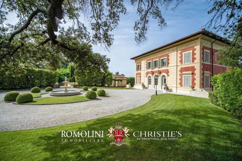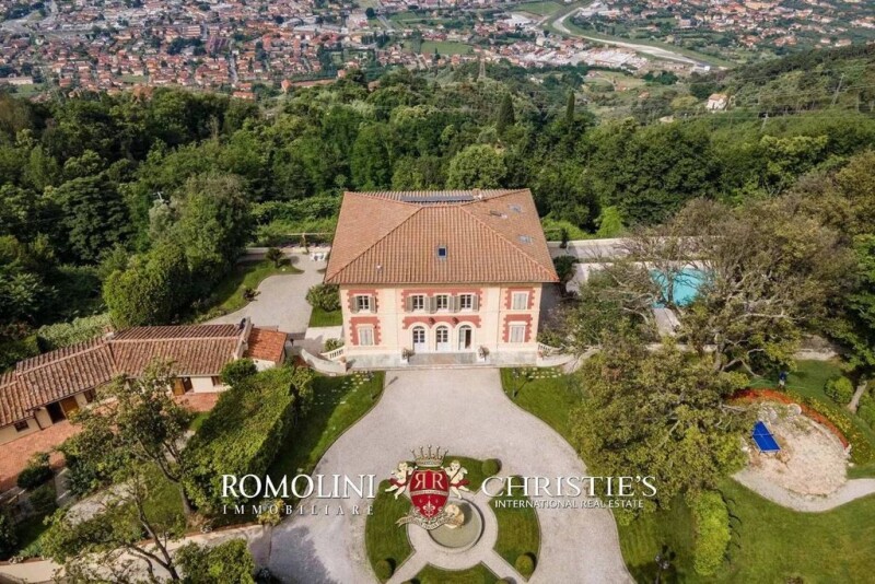 In a stunning location with view over the Tuscan sea of Versilia, luxury restored period villa with garden. The property dates back to the 18th century and has been masterfully restored, preserving its charm and beauty. The buildings (1,085 sqm) include 11 bedrooms and 13 bathrooms and many beautifully decorated halls. The lush garden with a belvedere offers an unrivaled view over the coastline, the Tuscan archipelago (including Elba) and Corsica. The property, fully enclosed by a stone wall, is located roughly 2 km from the services and just 5 km from Pietrasanta. DESCRIPTION OF THE BUILDINGS The manorial villa (815 sqm – 8,769 sqft, 6 bedrooms and 9 bathrooms) is laid over four beautiful floors, all connected by a convenient elevator or by internal staircases. The two lower floors have both direct access from outside, on opposite sides of the villa. - Ground floor: living/dining hall with two sitting rooms at each side, ample habitable kitchen with pantry, two bathrooms; - First floor: entrance room, reception hall with balcony, two studios (potentially convertible into two more bedrooms), wardrobe, bathroom and bedroom with en-suite bathroom; - Second floor: two bedrooms with en-suite bathroom, two bedrooms with a shared bathroom in between, living room with wardrobe; - Third floor: ample rustic living room, bedroom, bathroom and lofts. A rustic country house (235 sqm – 2,528 sqft, 5 bedrooms and 4 bathrooms) is located next to the villa and laid over two floors, both accessed directly from the garden: - Lower floor: living/dining room, kitchen with ample portico, TV room, bathroom, suite N°1 (made up of bedroom with bathroom and sitting area) and ample wine cellar in the back; - Upper floor: suite N°2 and N°3 (each made up of two bedrooms and a shared bathroom). These rooms are excellent for guests. At the southeaster side of the building is the control room for the surveillance systems. A garage (35 sqm – 377 sqft) has been built in the property to shelter cars, however the building is covered in stone and recalls an old countryside building so that it doesn’t detract from the prestige of the property. STATE AND FINISHES The villa dates back to the late-18th century (allegedly 1780) and is usually regarded as one of the oldest villas in the area. The building has been masterfully restored just a few years ago: all the original finishes have been preserved and restored wherever needed and possible so that we can still admire the beautiful marble and terracotta floors, iron railings along the staircases, beautiful frescoes covering the walls, finely decorated and carved coffered ceilings, faux architectures such as columns and half-columns. Ample windows make the rooms very bright and welcoming, in conjunction with a palette of colors composed of white and beige nuances. The conservative restoration, however, didn’t prevent the owners from installing modern services that allow enjoying the property at its full potential in the 21st century. The buildings are equipped with alarm system and video surveillance, heating has been installed under the floor so that there was no need to disrupt frescoes and decorations on the walls and an elevator connects all the floors of the building that are thus easily accessed. EXTERIORS The villa is immersed in its own 5,000-sqm private garden, fully enclosed by a handmade stone wall. The main gate opens onto a short graveled alley leading right in front of the villa, where is a graveled roundabout surrounding a garden with fountain. Beyond the villa is the lush garden, dotted with centuries-old trees and palms and marked by graveled walkways and hedges hiding a metal gazebo that offers shadow in the sunny days of summer. Right next to the villa, surrounded by a stone-paved sunbathing area, is the impressive 17 x 5 m swimming pool overlooking the Versilia coastline and the sea. The paved area is very generous in size and can easily accommodate an ample gazebo for pleasant poolside breakfasts and dinners. On the southwestern side of the garden, just behind the villa and a few steps from the pool area, is a wonderful paved belvedere offering a breathtaking view over the coast between Livorno and Liguria, the islands of the Tuscan Archipelago (including Elba) and even Corsica in the distance. CLOSEST CITIES AND TOWNS Closest services (2km; 5’), Pietrasanta (5km; 10’), Forte dei Marmi (11km; 20’), Viareggio (18km; 30’), Pisa (38km; 45’), Lucca (42km; 50’), La Spezia (53km; 1h), Volterra (110km; 1h 50’), Florence (116km; 1h 45’), San Gimignano (122km; 2h), Genoa (133km; 2h), Siena (178km; 2h 10’) CLOSEST AIRPORTS Pisa Galilei (48km; 45’), Firenze Vespucci (106km; 1h 20’), Genova Colombo (143km; 2h), Bologna Marconi (188km; 2h 15’), Milano Linate (252km; 3h), Milano Malpensa (306km; 3h 30’), Roma Fiumicino (365km; 4h), Roma Ciampino (382km; 4h 30’).