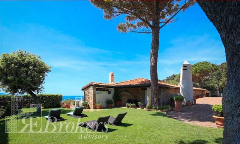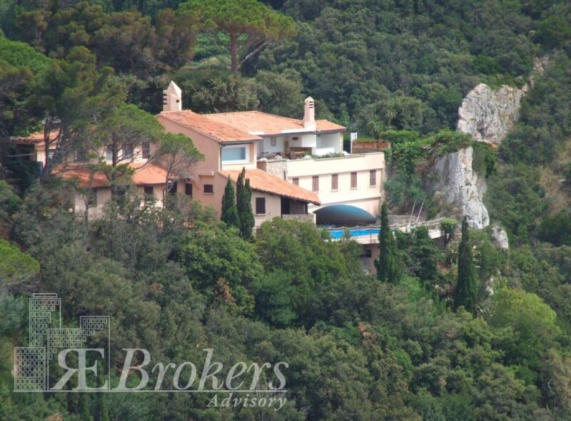 Re Brokers Advisory is pleased to offer an exclusive property with park and swimming pool in the heart of Argentario and precisely in Cala Piccola, in front of the Giglio island with direct access to the sea. Built on a project by Arch. Zacchiroli, it dates back to the 60s, and underwent a last important renovation and consolidation intervention in 2006/2007. It is accessed by a long private avenue lined with cypress trees, which leads to an area, with the possibility of parking for about 15-18 cars, 4 of which are covered. Just above this area there is a large garden, with an underground tank for fuel used as a private heliport. This is a requirement that is not easy to find in this type of property, considering the slope of the land. The state of maintenance is excellent, as is the distribution of the internal space. The structure is partly in brickwork and partly in reinforced concrete, partially covered in stone. English: You enter the villa (ground floor/living area) from an entrance on the south side and enter a large living room, with a superb sea view where the view of the Giglio Island appears in the foreground. Inside you can see floors partly in mahogany parquet and partly in ceramic, painted walls and partly covered with elm wood paneling. Wooden windows and wooden shutters, each with a sea view, wooden doors and gates partly in iron and partly in wood. The living room leads to a large terrace with a barbecue area and adjoining kitchen facilities. To the side of the living room there is a dining room with a large window overlooking the sea, the kitchen, and a bathroom, and two large internal staircases, one of which connects the kitchen area to the utility rooms, while the other connects the living area to the guest and master bedrooms below, and then again on the lower floor to the swimming pool. On the lower floor (sleeping area) there are 8 bedrooms, some of which with paneling, 4 bathrooms as well as corridors and stairwells. An independent apartment for the caretaker is located on the north side of this floor. On the second level there is an additional service room and bathroom and a wonderful swimming pool overlooking the sea with changing room and shower facilities. It can be accessed both from inside and outside, and is partially covered by a large brick arch. The finishes are all of a high standard, and equipped with electrical, water/hygienic sanitary systems, heating and air conditioning as well as a video surveillance system. The villa stands on a park of approximately 6,775 square meters to which is added an area of 5,875 square meters for a total of 12,650 square meters with tall trees and a well for irrigation. The property is within a Consortium called Cala Piccola: the roads and common areas are managed in a consortium between all the owners, guaranteeing security services, shuttle service and an equipped beach with a restaurant. For info Re Brokers Advisory 06/83089293.