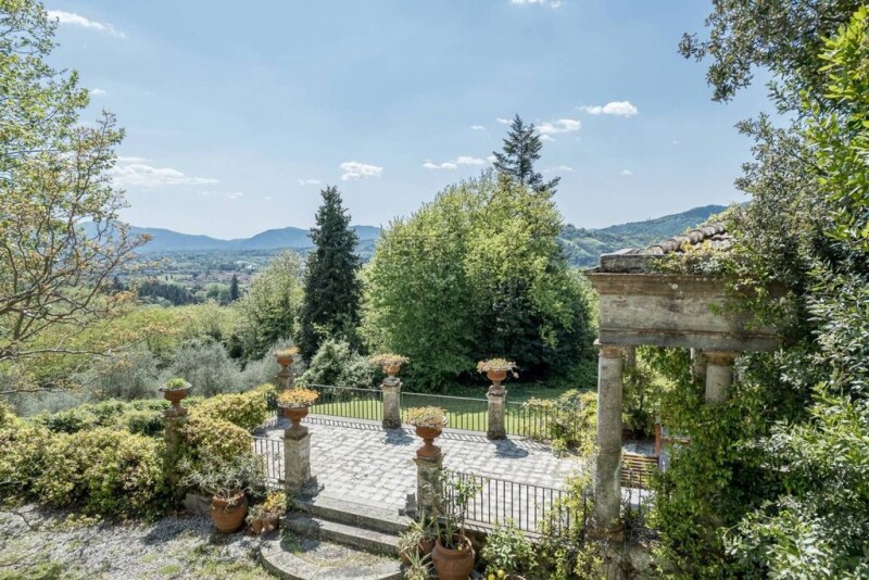 IA03998 - PRESTIGIOUS NOBLE VILLA ON THE HILLS OF LUCCA - For sale a charming real estate complex consisting of a historic villa, surrounded by independent ancillary buildings that form a small village with walls. Located on the hills of Lucca, in a panoramic position, enjoys a splendid view over the valley of the Serchio, the Piana di Lucca, the hills of Morianese and Camaiore. The property is located a few minutes from a town and is not subject to the constraints of the Superintendence of Archaeology, Fine Arts and Landscape. The Villa has its roots in 1100, probably as a point of observation on the valley. The medieval structure was rebuilt in the early 1800s, with a small temple dating from 1813, and then renovated in 1836, becoming the main home of the family who have owned it for over 200 years. The last restoration dates back to the 1960s. The building is spread over three floors above ground, plus a basement used as a cellar with direct access from the garden. The internal distribution allows a subdivision into up to five apartments, thanks to the double independent entrances and internal accesses that allow both the connection between the various levels and the autonomy of the individual units. The ground floor comprises nine rooms, two bathrooms (one for guests and one with shower) and three kitchens, of which one is old. The first floor houses eight rooms and four bathrooms with bathtub. The second floor has twelve rooms, three bathrooms with bathtub and an old kitchen. The villa has two main entrances on the east and west sides, a service entrance on the north side, Two French doors on the south side and an external staircase that allows independent access to the first and second floor. The garden is enriched by secular plants and rare species. Adjacent to the Villa are accessory buildings. The House of the Factor, a building of civil dwelling on two levels, includes on the first floor an independent apartment, accessible from the garden and the pedestrian street, consisting of kitchen, bathroom and five rooms. On the ground floor there are four large rooms and other smaller ones for agricultural activities, maintenance, tinning (former stables) and a room with a brick oven. At the end of the apartment, on the first floor, you enter the private chapel, used for religious worship, which also has an independent entrance from the neighboring pedestrian street. The Limonaia is a ground floor building accessible from the garden, designed to house the large pots of lemons during the winter, of which eleven are still present. It also includes a veranda overlooking the outside road and a shed for tools. The Fienile, called Capanna, is a rural building on two levels, accessible from both inside the Villa and from the adjacent external road. The House of the Factor, the Limonaia and the Fienile need renovation. The possibility of building a swimming pool in the lower garden was tested. The villa has a surface of 1,400 square meters gross, to which are added 1,400 square meters of buildings accessories. The surrounding land measures 7,000 square meters and includes an olive grove in production. Energy class E. Request € 2,700,000. N.B. Location is not accurate for privacy reasons.
