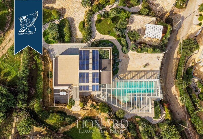 This prestigious contemporary villa set on a hill of the beautiful coast of the province of Trapani offers splendid panoramic views of the coast and the Aegadian Islands. The charming estate has two levels; a majestic white marble staircase leads to the main entrance where we find a big living room, a dining room with independent access to the outside and a well-equipped kitchen. A sliding glass door leads to the sizeable double bedrooms with en-suite bathrooms. On the lower floor, there is a second living area featuring a kitchen and a dining room, and three double en-suite bedrooms. Also on the same floor, we find a wellness area with a wooden sauna, chromotherapy shower and marble wall with cascading water. This enchanting villa offers a private garden of about 200 sqm with Mediterranean plants and shrubs. Its jewel in the crown is the splendid indoor swimming pool with a spa area with hydro-massage, a fountain and a sunbathing area. This luxurious villa is completed by a covered parking area with three parking spaces. Ref: 7198.