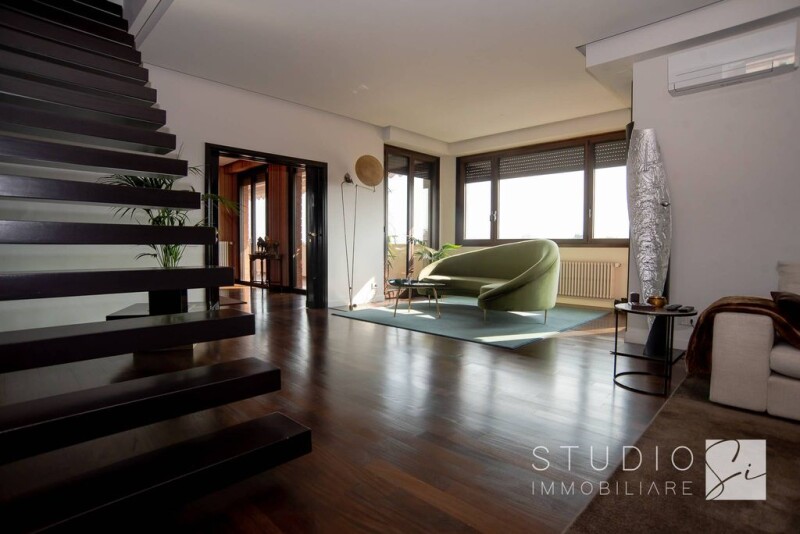 Located in one of the most exclusive and sought-after areas of Pistoia, a short distance from the city of Florence, we have for sale this prestigious penthouse with large square footage of 326 square meters, located on the fourth and fifth floor with over 93 square meters of terraces, located within an elegant residential complex in excellent condition of maintenance. The dwelling represents a unique living solution for charm and comfort and is in perfect condition, thanks to the recent and complete renovation. The rooms are extremely spacious and bright, by virtue of the multiple external views available to the dwelling. The finishes are fine and refined, starting with the parquet flooring that covers the entire house, as well as a careful selection of fine classic furniture that combines with the choice of contemporary materials in dark tones. The living areas of the luxurious apartment welcome a huge living room connected directly with the dining area where the two rooms are divided by an elegant and innovative bioethanol fireplace that makes the space cozy and chic. The kitchen is modern and well-equipped, contrasting with the apartment's classic surroundings, and directly overlooks a terrace. Continuing into the sleeping area we find four elegant bedrooms, including the master one with en-suite bathroom, which differ from each other in their finishes and style, from the particular headboards covered in luxurious blue velvet, boiserie and warm colors on the walls. Accompanying the sleeping quarters we also find a study and two other bathrooms, nicely finished with modern sanitary ware and walk-in shower. Through a magnificent design staircase made with cantilevered steps we ascend to the fifth floor where we develop an 'additional living area overlooking the charming habitable and panoramic terrace of 45 square meters that offers a beautiful view of the city. Perfectly equipped to receive beautiful relaxing corners with lounges, small tables and barbecue area, the terrace represents a small oasis of peace and conviviality. Layout: - Fourth floor consisting of entrance hall, double living room, eat-in kitchen, dining room, three double bedrooms, single bedroom, study, plus storage rooms and four bathrooms, overlooking three terraces; - Fifth floor where there is an additional living area, attics and habitable terrace. Location: The penthouse is located a few kilometers from the city of Florence, in elegant residential area of Pistoia, a stone's throw from the historic center, in quiet and elegant residential area, excellent that those who want to live in the quiet without giving up all the services of the city.