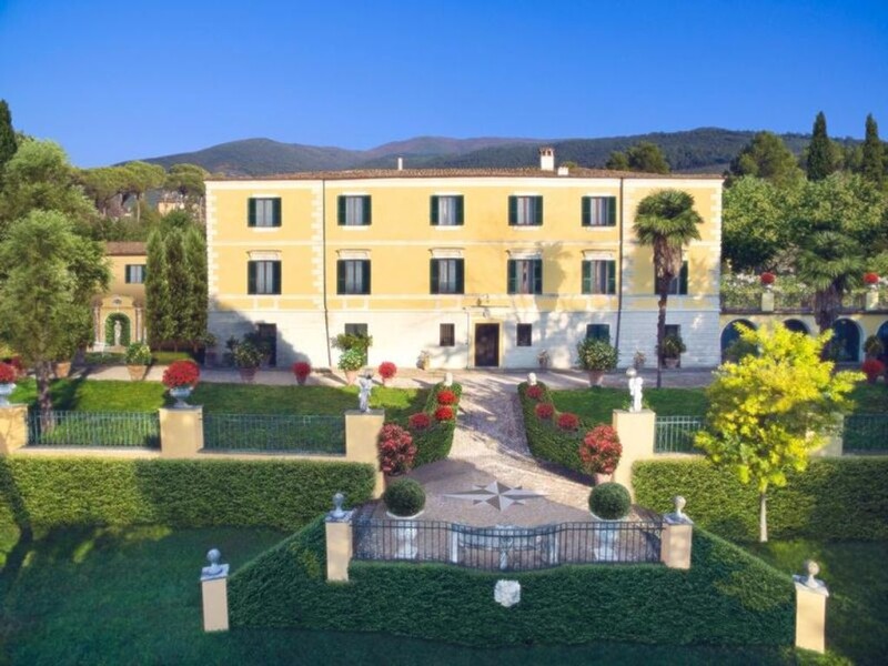 Immersed in the green of the Umbrian countryside, a few steps from Fonti del Clitunno and Spoleto, this beautiful luxury villa is for sale. Originally from the nineteenth century, it was a wedding gift from Professor Pietro Brunamonti to his illustrious wife, the poet Alinda Bonacci Brunamonti, who here welcomed the most emeritus writers of the time. Completely renovated, the prestigious residence is on two levels, for a total of 510 square meters. On the ground floor there are the private chapel, the valuable billiard room and the library, while on the main floor the entrance, two living rooms, the dining room, the living room, the kitchen, the services and the laundry. Five other bedrooms, two of which with private bathroom, make up the sleeping area of the second floor. The property includes the attic and two large terraces. In every room you can breathe the story that lived in this beautiful dream villa, but the library of the poet, with her tomes and paintings made by herself is definitely the room that more than others conveys charm and deep emotion. Externally, a large scissor staircase gives access to the garden below, where we find a romantic lake with bridge and the limonaia. The roar of the water of the pond and the nymphaeum at the entrance, the carefully illuminated statues and the masks among the ivy, make the park particularly impressive in the evening.