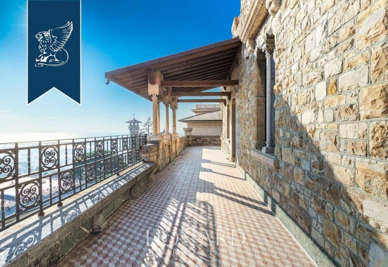 In Castelletto, in the heart of one of the most elegant districts in Genoa, there is this majestic historical villa for sale, the last masterpiece of famous Florentine architect Gino Coppedè. From the top of its exclusive panoramic position, just above Genoa's charming city center, this estate offers great views of the sea and the port of Genoa. After a skilful conservative restoration that involved the big terraces and the roof in 2020, this estate has retained its timeless charm, with a stone facade and grotesque decorations. Spread over three levels, plus a basement with cellars, the main house is completed by an apartment intended as the caretaker's home, featuring a living room, a kitchen and three bedrooms. The main property houses numerous large halls on the ground floor, while the sleeping area is on the first floor. On the top level, a panoramic terrace offers breathtaking views. Despite being in the city center, there is no shortage of large green spaces, thanks to a 1,000-sqm private park with a well-kept lawn and a tennis court. Ref: 8752.