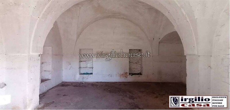 Ref. hus01 Virgilio house offers for sale in Carovigno Masseria Villa Carmine: This enchanting Masseria is located in a privileged position a few kilometers from Carovigno. Those looking for a historic property, a few km. from the sea, cannot fail to be fascinated by this property, a pearl set in the wonderful park of ancient olive trees, a structure that boasts a splendid panoramic position. The Antica Tenuta Masseria Villa Carmine has its origins around the early nineteenth century. The architecture of the masseria and the panoramic views that can be enjoyed from it are of rare beauty, This property represents the ideal choice for those looking for: - the quiet of the Apulian countryside; - an ancient and charming property; - a property to generate income with summer rentals. The architecture of the masseria and the panoramic views that can be enjoyed from it are of rare beauty, rich in the typical colors of Puglia. The Masseria has almost all the internal rooms with star or pavilion vaults and retains the original floors. Outside the farmhouse, several courtyards, stables, a citrus grove and an ancient pergola with stone columns characterize the architecture of the building. The property is currently divided into three residential units, all with stone vaults. On the ground floor there is a large warehouse with star vaults and stone flooring. Also on the ground floor, with independent access and separated by the access ramp to the first floor, there are two apartments. The first has a living room, kitchen, a bathroom and two bedrooms. The second apartment is divided into a kitchen, a bedroom and a bathroom. Next to the second apartment there is a garage. All the rooms on the ground floor have stone vaults and many retain the original floors with the characteristic cement tiles. On the upper floor, there is a bright entrance hall which leads to the sleeping area, consisting of two large bedrooms, with star vaults, and a bathroom. Also from the entrance you can access the living room, kitchen with fireplace, terrace and balcony. In the rear courtyard of the Masseria there are vaulted rooms, once used as stables and a beautiful citrus grove, enclosed by high walls. All around the property 25 hectares of land overlooking the sea with magnificent centuries-old olive trees.