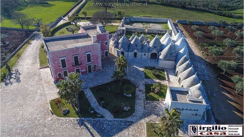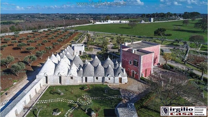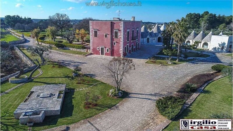 Ancient Masseria with group of 21 trulli, 7,5 km from the historic center of Martina Franca. The Masseria Pozzo Caroli saw the laying of its last stone way back in 1884, by the Caroli family, and acts as the fulcrum of the agricultural life of the entire district between the Itria Valley and the Murge Tarantine, in Martina Franca. It reached its maximum splendor at the beginning of the 20th century (when the patronal house was joined by a structure made up of 21 trulli to house the farmers) among cereal cultivations, sheep breeding and low courtyard, on a total extension of approximately 60 hectares. The property has a covered area of 1,048 square meters and is surrounded by 50 hectares of land, some of which are olive groves and some woods. The property is located in a dominant position with wide panoramic views in a well served and connected area. In a hilly position, the Masseria with forest in Martina Franca, has panoramic views of the surrounding countryside, typical example of Apulia landscape. This property is the ideal choice for those looking for: - the quiet of the Apulian countryside; - an ancient and charming property; - a property to be put on income with summer leases. The architecture of the farm and the panoramic views from the same are of rare beauty, rich in the typical colors of Puglia: the blue of the sky, the intense red of the earth, the dark green of the olive trees, the dazzling white of the lime. The Masseria is located in the heart of the Itria Valley, in one of the most popular areas of Puglia: just 7.5 km from Martina Franca, about half an hour drive from Ostuni (22 km) and Taranto (436 km) and less than an hour from other important historical centers of the region such as Bari (50 km) and Lecce (60 km). The airport of reference is Brindisi Papola Casale, 63 km, while the airport of Bari Palese (97.7 km) is about an hour and 18 minutes drive. The property, consisting of the manor house and a group of 21 large trulli, has a net area of 1,048 square meters and is surrounded by 1 hectare of private garden and 49 hectares of olive groves and forest. The Main House, with a net surface of 550 square meters, is the result of the renovation and expansion of a farmhouse dating back to 1800, the ancient center of agricultural activity in the area. The house is on two levels: on the ground floor there is a hallway with bathroom, a large living area with fireplace, a kitchen with service entrance and bathroom, a small cellar carved into the rock instead of the old cistern. The The first floor is divided into two apartments, served by two different stairs. An internal staircase leads to the main apartment which is divided into two living rooms, three bedrooms and a bathroom. The second apartment, has an independent external access and consists of entrance hall, bedroom and bathroom. Next to the main house there is a complex of 21 trulli of 450 square meters in which there are 9 suites with en-suite bathroom, all with private entrance. The property is in excellent condition, the manor house is fully renovated, the group of trulli is being completed. The swimming pool, for which permission for construction has been obtained and requested, is under construction. The main villa has high quality finishes. The rooms are large and bright, with local stone floors, interior doors, vaulted ceilings and pavilion, exposed stone and a beautiful stone fireplace in the main living room. The private land, which surrounds the property, is about 50 hectares of forest and olive grove, fully fenced. The two hectares near the house are bordered by dry stone walls and of these about 7.000 square meters are occupied by a verdant garden. Services and utilities - artesian well - Electrical system with power 20 Kw and generator - Heating by Gas - Alarm system Use and potential The property enjoys an excellent location: panoramic and isolated but easily accessible. Just 7.5 km from Martina Franca, one of the most famous historical centres of Apulia and a short distance from the other major centres of the region, it is ideal both as a main home and as a home to spend long periods of vacation or to use as a hotel.