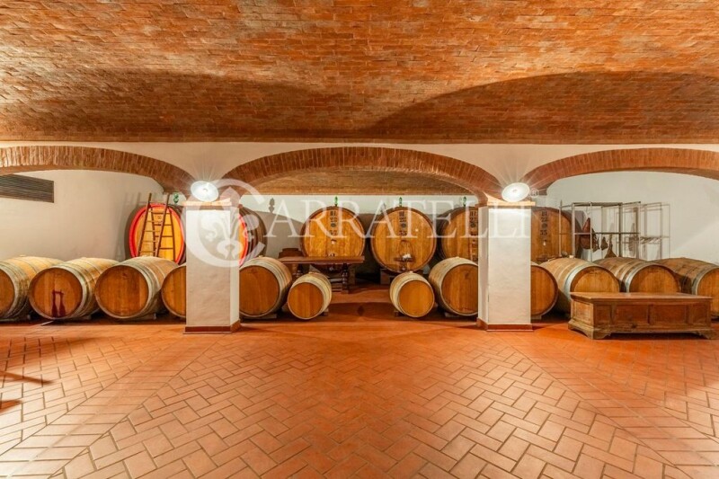 Laterina Pergine Valdarno, Arezzo, wine and oil company of about 66 hectares with cellar of about 760 sqm. The company is an excellence of the area , well connected to the main roads is flagship for the very high quality and production of Tuscan wine and oil. Description A few kilometers from the city of Arezzo stands this renowned winery with cellar .The cellar of about 760 square meters is well structured and well connected to the state highway. Strategically located it allows easy access to customers who want to buy products and couriers for the marketing and distribution of wine and oil. On the entrance floor of the winery we are greeted by a large space with a fireplace dedicated to tastings and sales. The area dedicated to production is well designed and consists of two large rooms for aging and storage. Adjacent to the cellar is the warehouse for the storage of agricultural machinery The temperature inside the cellar is constantly controlled to optimize the timing and quality of production. Condition and finishes The cellar is perfect in every part and the materials used are those of the classic Tuscan tradition .The systems are up to standard and solar panels provide for energy saving. The floors are in terracotta tiles , the vaulted ceilings in original bricks or exposed wooden beams. The cellar in addition to being very functional is also well inserted in the landscape of the area devoted to the cultivation of the vineyard . Outdoor spaces The land owned by the winery is about 66 hectares divided as follows : 20 hectares of arable land, about 5 hectares of olive grove, 11 hectares of vineyard, 29 hectares of woodland .Within the property intended for cultivation there is a large lake that ensures water supply more than enough for the needs of the company. The vineyard is predominantly San Giovese, Canaiolo, Malvasia nera , Merlot. Currently there are eight labels of excellence in addition to Vin Santo and Grappa : production is about 45000 bottles and 35/40 quintals of oil . Potential uses The farm is perfect for those who want to produce excellent wine and excellent Tuscan oil .The marketing of products is already well established , it is possible to include the cultivation of white grape vines and increase the number of hectares of vineyards . Location The services are all available nearby, reachable also on foot, and the most famous centers of Tuscany are easily reachable by car, such as Arezzo, Florence, Siena, San Gimignano and Cortona.