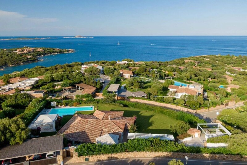 Elegant independent villa in Punta Lada, Porto Rotondo. The villa is surrounded by a large and well-kept garden equipped with even twilight lighting and boasts an enchanting sea view from the islands of Tavolara to the gulf of Cala di Volpe. Externally it offers various equipped spaces ensuring comfort and privacy for guests in every area of the house. The irregularly shaped swimming pool is equipped with hydro massage and waterfall. Elegantly furnished, the villa has 4 bedrooms with ensuite bathroom and independent access to the garden, one of which is an annex independent from the main body, large lounge and separate kitchen. A perfect combination of elegance and comfort with the advantage of having a unique sea view. Independent staff room and laundry. The villa offers 2 accesses from two different streets, one of which is pedestrian and the other dedicated to cars with an electric gate and three large covered parking spaces. Wellness centres, football pitches, sports complexes, tennis courts, playgrounds, bars, shopping centres, municipal offices.