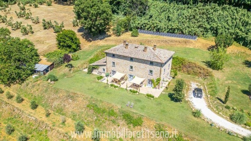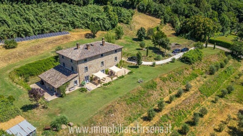 Umbria-Orvieto A few minutes walk from the historic center of Orvieto, in a panoramic and sunny position, beautiful villa recently renovated ( 2021) with quality and environmentally friendly materials with high energy efficiency systems and fixtures. The villa, located on three floors, has a total area of 608 square meters and is currently divided into four residential units connected to them and could be easily used as a single large private house. The villa is surrounded by a land of about three hectares partly lawn and garden with irrigation system, partly olive grove (about 100 plants) , and partly arable land, on the land there is an ancient fountain of ml.8 x mt. 4 that can be converted into a swimming pool, a photovoltaic system and a directory building of about 80 square meters. with project approved for its renovation. The villa is distributed as follows: from a manor apartment of approx.304 on the Ground Floor and first and consists of a large living-dining room, a kitchen, a bedroom, a bathroom and a storeroom on the Ground Floor and a master bedroom with a large en suite bathroom, a walk-in closet with two storerooms- changing room and two more bedrooms, one with en suite bathroom; first guest apartment on the Ground Floor of Sqm.97 consisting of a large kitchen-living room and two bedrooms with two bathrooms; second guest apartment of approx. 98 on the second floor comprising a kitchen-living room and two bedrooms with two bathrooms; third guest apartment of approx. 73 on the second floor comprising a kitchen-living room, and a bedroom with bathroom. The villa has been renovated with anti-seismic criteria, equipped with underfloor cooling / heating system with heat pump, high energy efficiency fixtures and a 23.1 Kwh solar system, and has an energy class that uses almost zero consumption in catg. A / 4. The property also has a private natural source, public water supply and a private well. The villa is a few minutes walk from the historic center of Orvieto along the Rupe ring and a few hundred meters from a shopping center, it is also about 1.5 km away. from the train station and about 2 km. from the Rome-Milan motorway exit.