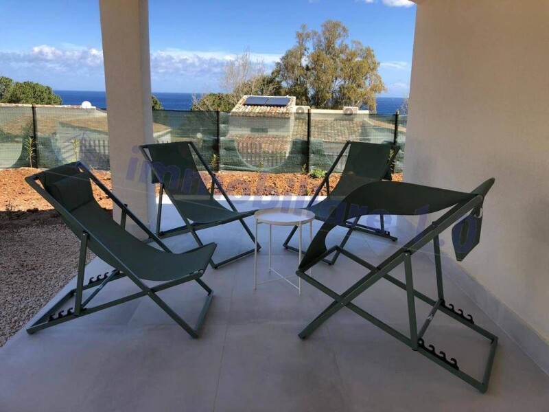 We have the pleasure to offer for sale, between sky and sea, a magnificent and exclusive newly built detached villa with absolutely unobtainable square footage and a typically Mediterranean style. The villa is sold furnished in its current state. The villa was built using techniques and materials put in place by the skilled hands of local craftsmen and labourers. In fact, it is characterised by the typical 'ciaramire' (terracotta tiles), wooden window frames and large windows with a sea view that create a unique setting in harmony with the unspoilt environment of the splendid bays that surround it. Inside there is a large living area, a comfortable kitchen, two bathrooms and three bedrooms. A spiral staircase leads to the first floor where there is a solarium with a sea view. Outside, there are four covered verandas where one can enjoy great moments of relaxation and conviviality, with the ever-present barbecue and relaxation area. as well as an enchantingly functional and undemanding garden. The plot covers an area of approximately 1,500 square metres. The villa has running water, a large underground water reserve and a well with spring water. The garden has been planted with approximately 200 oleanders, hawthorn plants, succulents and rosemary. The fence was made of wood and wire mesh as prescribed by the superintendence. The villa is located a few steps from the bay of Cala Mazzo di Sciacca, characterised by splendid crystal-clear waters, and enjoys the privilege of having one of the most beautiful panoramic views of the entire gulf. It is in the immediate vicinity of the 'Zingaro' nature reserve where you will find lush Mediterranean vegetation and fragrant spice plants. In addition, the villa is close to the enchanting medieval village of Scopello, to cultural sites such as Segesta, Selinunte and Castellammare del Golfo, which prides itself on having sulphurous waters with extraordinary curative properties. In addition, the coast lends itself to pleasant boat trips, scuba diving, water sports and excursions along the Zingaro oriented reserve. Airport Palermo - 55km / Trapani Birgi - 55km / Erice35km / Segesta 28km / Scopello1km /. WORKS FINISHED IN MAY 2023 - RENDERING TO BE REPLACED WITH PHOTOS -.