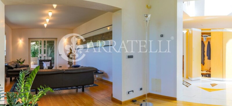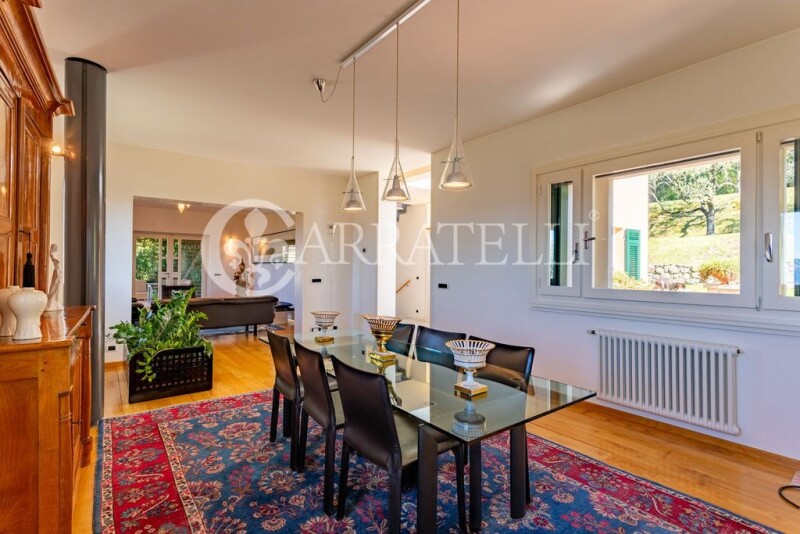 On the first hill of Sarzana, considered the historical heir of the ancient Roman city of Luni, a few kilometres from the beaches of Bocca di Magra and the tourist port is situated this luxury villa of about 380 square meters made in a modern key inserted in a park of 3 hectares planted with fruit and olive trees to frame the splendid panoramic infinity pool. Location Strategic location to live in harmony with the secluded atmosphere of the countryside and in a convenient context to reach all the main services. The town of Sarzana is only 2 km away as is the highway and the main communication routes. The equipped beaches and the dock are easily accessible by public transport within a quarter of an hour or by car. The property enjoys an extremely panoramic and private position Description Leaving the center of Sarzana, following along a secondary road you reach the villa. From the electric gate you enter a convenient parking area for three cars. The atmosphere is the typical Ligurian countryside that can be seen from all the large and bright windows of the living room that welcomes you as soon as you enter the villa. The well-furnished living room overlooks the large equipped veranda, from the dining room you pass into the complete and comfortable kitchen, finally a service bathroom and the study room complete the ground floor. An internal design staircase made of marble and steel leads to the first floor dedicated to the sleeping area consisting of three bedrooms and two bathrooms. The double heights of the interiors offer ample space making the atmosphere pleasant, as well as giving enchanting views of the garden. Outdoor spaces The luxury property is complete with a splendid swimming pool with waterfalls and hydromassage area, sheltered from the rest of the garden and with great privacy, perfect for relaxing and cooling off during the hot summer days. Large park of about three hectares is completely fenced, planted with olive trees and fruit trees, it slopes gently following the ridge of the hill. State and finishes The luxury residence is perfectly preserved in all its parts, internal and external. The finishes are excellent, have been used precious materials such as marble for the staircase and bathrooms, ceramic for the kitchen and wood for the sleeping area. The construction type allows a good degree of energy saving that protects from heat and cold. Potential use Perfect villa to host a large family for holidays by the sea or as a main residence thanks to its proximity to all services. Easy to maintain, it does not require a gardener or caretaker.