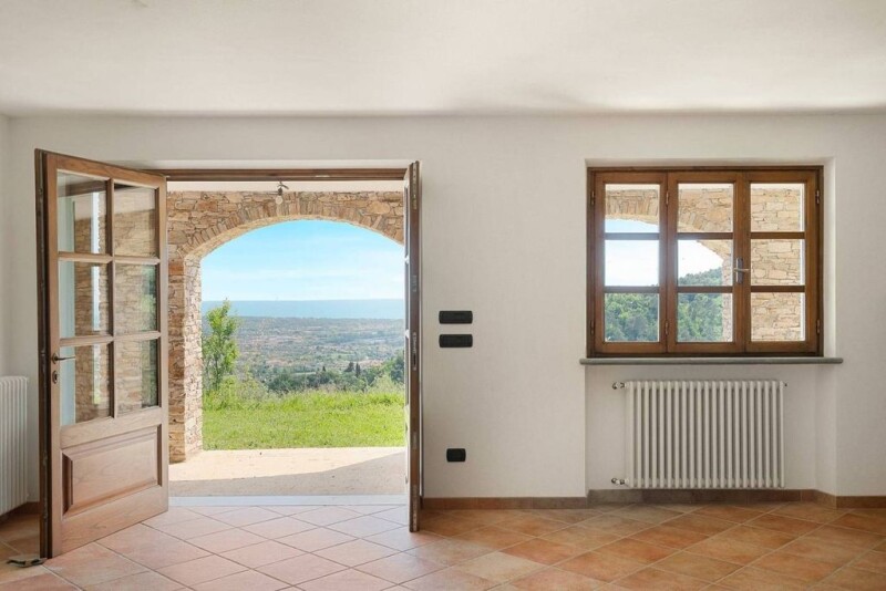 Luxurious villa on the hill with unparalleled sea view Located on the hills of Pietrasanta, behind Forte dei Marmi, this characteristic stone villa offers a stunning sea view that extends over the Versilia coast and is surrounded by terraced land of approximately 5800 m2 planted with olive groves. Furthermore, it has a second non-contiguous plot of approximately 1450 m2 located further upstream. The outdoor spaces around the house are enriched by well-kept green areas with orange and lemon trees, as well as various areas ideal for outdoor relaxation, from which you can enjoy the splendid sea view. The farmhouse is spread over a basement and two staggered levels on the ground and first floors, for a total of approximately 325 m2, as well as a large attic room. The rustic house houses a large living room with fireplace, an open kitchen and a first bathroom in the basement. The living room and kitchen are connected externally with a large terrace, perfect for outdoor lunches and dinners with sea view. The first floor is composed as follows: entrance, kitchen with dining room, large living room with fireplace, bathroom and a terrace with sea view. The sleeping area is composed of: four double bedrooms with private terrace, two bathrooms and two storage rooms. Two of these bedrooms enjoy a splendid sea view. From this level, a spiral staircase leads to a large attic room used as a study. *For privacy reasons the address in the form is indicative and the property is still located in the immediate vicinity*.
