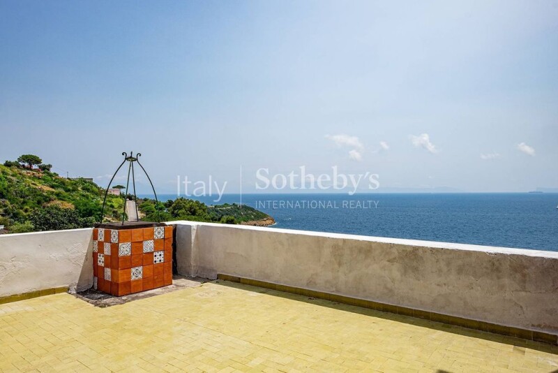 On the magnificent island of lemons, Procida, this historic residence is located in the famous "Palazzo Guarracino", dating back to the 19th century and once chosen as King Ferdinand's preferred accommodation during his hunting trips. Recently renovated on its external façade, the building spans three levels and encompasses various residential units, each with its own independent entrance. The apartment we are highlighting today grants access via Via Centane through a private gate, leading to a small external courtyard, bordered by a delightful garden and storage rooms. Adjacent to the courtyard, a brick staircase ascends to the upper floor, where the entrance to the apartment awaits. Upon crossing the threshold, you will be greeted by spacious interiors exuding elegance. Vaulted ceilings and 19th-century ceramic floors instill a sense of grandeur. The property, though requiring some renovation works, boasts two generously-sized bedrooms. One bedroom features a large window overlooking the enchanting entrance courtyard, while the other boasts an intimate panoramic balcony with captivating sea views. In the heart of the apartment we find the living area, complete with its own balcony overlooking the sea and direct access to the external terrace, it offers a breathtaking panorama of the Carbonchio Bay and the island of Capri. The apartment's crowning jewel is undoubtedly its terrace, spanning approximately 30 m2. An old well, adorned with ancient tiles, lies nestled in one corner, adding an extra touch of charm. The kitchen also opens onto this terrace, providing the perfect space for delightful meals with guests, while savoring the stunning surroundings. Completing the interior, you will find a spacious bathroom.The location of this residence ensures peace and tranquility, along with excellent sun exposure. Furthermore, all major points of interest, including the tourist and commercial port, the beaches, and the bustling center filled with shops and charming restaurants, are conveniently within easy reach.