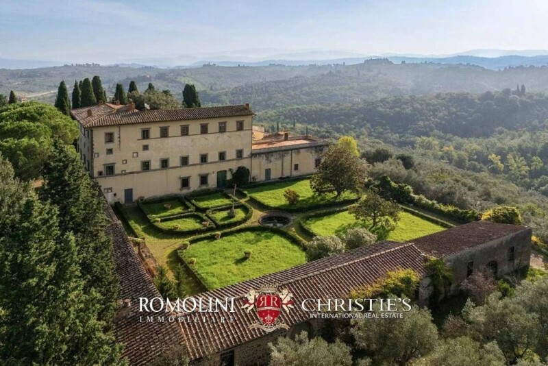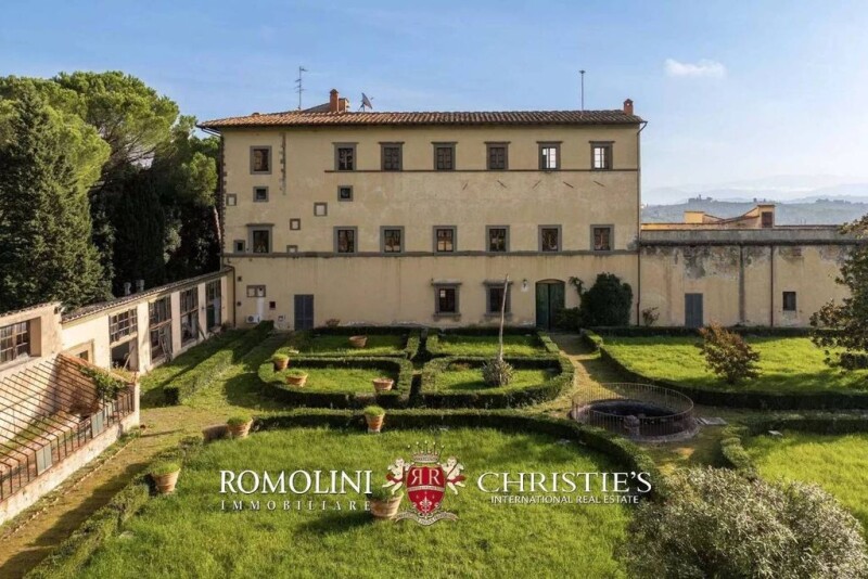 In a panoramic position in the hills of Florence, overlooking the historic center of the city, imposing 15th-century manorial villa with park and olive grove for sale. The property consists of several buildings (over 4,600 sqm in total) that include numerous guest apartments, reception rooms, and even a 12 × 6 m indoor swimming pool. The 11,700-sqm park surrounding the villa, although to be recovered, includes an Italianate garden and several paved courtyards. Services are available in the nearby town of Scandicci, 10’ drive, on the outskirts of Florence. However, the convenient location of the property makes it easy to move throughout Tuscany and visit the region’s best-known art cities (Greve, San Gimignano, Montalcino, Monteriggioni, Siena, Arezzo, Montepulciano, Pienza...). DESCRIPTION OF THE BUILDINGS, STATE AND FINISHES The manorial villa (2,537 sqm – 27,298 sqft, 26 bedrooms and 20 bathrooms) is a large U-shaped building with an extension on the south arm that practically constitutes an independent body from the rest of the structure. At the southwest end of the building one can still detect the remains of an ancient watchtower, around which the villa was later developed in the 15th century. The outline of the building appeared in its present form as early as the 18th century (as detectable from a fresco preserved at Villa Pucci in Rovezzano), while the façades are clearly 16th-century in design. Initially, the villa was characterized by two loggias, one on the ground floor (closed in the 17th century, giving rise to the square-plan halls at the building’s entrance) and one on the top floor, still clearly visible. The building, due to its considerable historical significance, has been subject to a Vincolo by the Ministry of Education since 1970. The building today consists of four main floors plus a basement with technical rooms and a partially practicable attic: • Ground floor: reception halls, kitchen, aristocratic chapel and service bathroom; • First floor: hall with coffered ceiling, large panoramic terrace (144 sq. m.), seven bedrooms and five bathrooms; • Mezzanine floor: central corridor, five bedrooms and two bathrooms; • Second floor: four bedrooms, two bathrooms and large panoramic loggia (154 sq. m.). The southern extension, on the other hand, houses various historic rooms used as cellars and storerooms, partially practicable attics and four apartments: • Apt. N°1: living room, dining room, kitchen, three bedrooms and three bathrooms; • Apt. N°2: living room, kitchen, three bedrooms and three bathrooms; • Apt. N°3: living room, kitchen, two bedrooms and two bathrooms; • Apt. N°4: living room with kitchenette, two bedrooms and two bathrooms. Right next to the villa, a continuation of the building, is a large lemon house (588 sqm – 6,327 sqft) that houses a winter garden, a relaxation area with a 12 × 6 m indoor pool, a convenient garage, and various storerooms and warehouses. Just below the villa is a farmhouse (326 sqm – 3,508 sqft, 2 bedrooms and 2 bathrooms), entirely rebuilt in 2000 and currently divided into two apartments: • Apt. N°5: living room with kitchenette, bedroom and bathroom; • Apt. N°6: living room with kitchenette, bedroom and bathroom. The Foresteria (791 sqm – 8,511 sqft, 18 bedrooms and 19 bathrooms) is a large three-story building that includes a spacious communal laundry room, an office with bathroom, and thirteen guest apartments: • Apt. N°7: living room, kitchen, two bedrooms and two bathrooms; • Apt. N°8: living room with kitchenette, two bedrooms and bathroom; • Apt. N°9: living room with kitchenette, bedroom and bathroom; • Apt. N°10: living room, kitchen, bedroom and two bathrooms; • Apt. N°11: living room with kitchenette, bedroom and bathroom; • Apt. N°12: living room with kitchenette, bedroom and bathroom; • Apt. N°13: living room with kitchenette, bedroom and bathroom; • Apt. N°14: living room with kitchen, two bedrooms and two bathrooms; • Apt. N°15: living room with kitchenette, bedroom and bathroom; • Apt. N°16: living room with kitchenette, bedroom and bathroom; • Apt. N°17: living room, a kitchen, bedroom and bathroom; • Apt. N°18: living room with kitchenette, staircase, two bedrooms and two bathrooms; • Apt. N°19: living room, kitchen, two bedrooms and two bathrooms. The other outbuildings are for a woodshed (160 sqm – 1,722 sqft) and storage (234 sqm – 2,518 sqft). For the woodshed, the possibility of obtaining two small guest apartments inside the building was evaluated in the past. EXTERIOR The villa is surrounded by a 11,700-sqm (2.9 acres) park that includes an Italian garden at the back of the building, several paved courtyards and lawn areas with large shade trees. All the green areas are in need of recovery and landscaping. An additional 2.0 hectares of land are devoted to olive groves. CLOSEST CITIES AND TOWNS Scandicci (5km; 10’), San Casciano in Val di Pesa (15km; 20’), Firenze (16km; 25’), Bagno a Ripoli (19km; 25’), Greve in Chianti (32km; 45’), Figline Valdarno (41km; 40’), San Gimignano (56km; 1h 5’), Monteriggioni (57km; 55’), Siena (74km; 1h 10’), Volterra (77km; 1h 25’), Lucca (81km; 1h 10‘), Arezzo (83km; 1h 10’), Montalcino (111km; 1h 50’), Montepulciano (115km; 1h 30’), Pienza (122km; 1h 35’) CLOSEST AIRPORTS Firenze A. Vespucci (12km; 20’), Pisa G. Galilei (80km; 1h), Bologna G. Marconi (104km; 1h 15’), Grosseto C. Baccarini (143km; 2h 5’), Perugia San Francesco (166km; 2h), Roma Ciampino (293km; 3h), Roma Fiumicino (307km; 3h 10’).