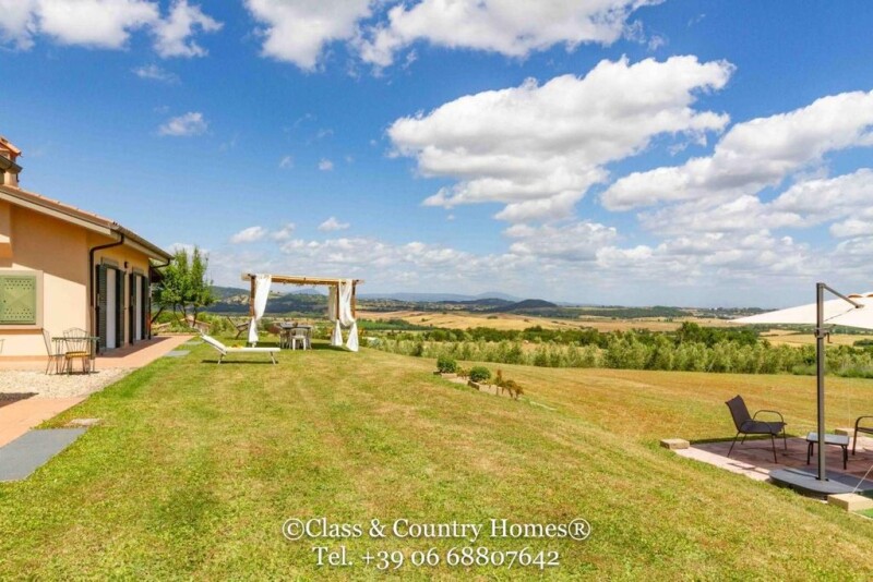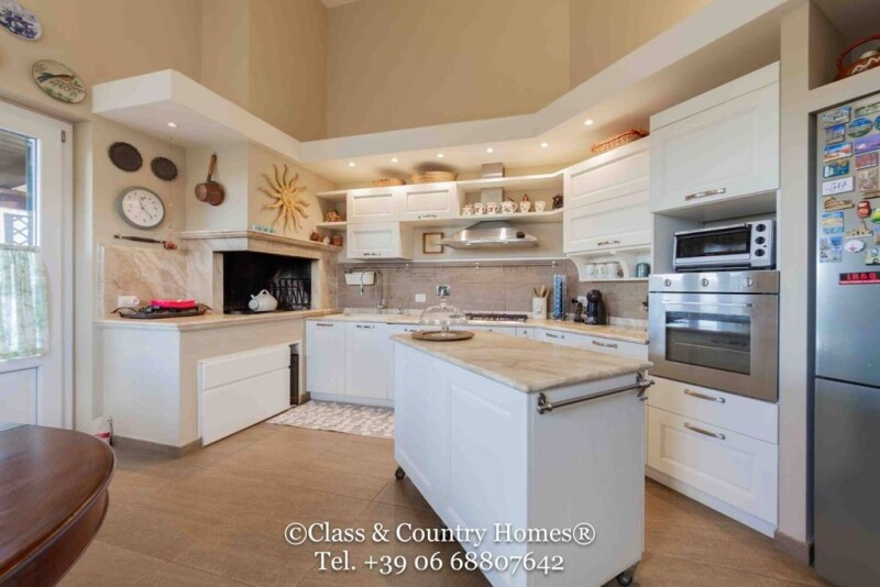 An Eco-Chic dream in a strategic position, with Olive Groove and Panoramic Views, just a few minutes from Lake Bracciano, in Central Italy. The estate extends over three hectares of flat and panoramic land, offering 360-degree bucolic views. One hectare is dedicated to the production of organic extra virgin olive oil. The lush olive grove of 350 trees is equipped with an efficient drip irrigation system, with excellent production. A prestigious eco-friendly residence of very recent construction nestled in an area of inestimable landscape value, but also in a strategic position, well connected to the center of Rome. One of the distinguishing features of this exclusive property is the meticulously maintained olive grove that produces high-quality organic extra virgin olive oil. It represents the ideal setting for those seeking a refined yet genuine rural lifestyle. This villa represents the pinnacle of construction innovation. Set on three levels with the adjacent agricultural annex, the complex was built in 2012 with cutting-edge technologies and highly efficient materials. The earthquake-proof structure in reinforced concrete, perfectly insulated from the ground and inspectable, guarantees an excellent energy class. A true technological jewel designed for maximum energy savings: photovoltaic panels, thermo fireplaces, solar thermal, fan coils and heat pumps work in synergy for unparalleled comfort with minimal management costs. Safety is a priority: electric generator, perimeter and magnetic alarm system, video surveillance and armored access. The villa fascinates with its elegant style inspired by historic Roman farmhouses, offering panoramic views and pleasant natural ventilation. The interior welcomes you with a spacious and very bright entrance hall with a comfortable closet and a bathroom. Follows the living area with generous heights and fireplace. Three French windows flood this welcoming and refined space with natural light, opening onto the outside. The kitchen with dining area is equipped with a charming fireplace for barbecues, with the external porch. The sleeping area on the ground floor is well separated and features a suite with walk-in closet and private bathroom and two further large bedrooms with a dedicated bathroom. A fourth bedroom, ideal for guests or service staff, completes this level. The first floor is entirely dedicated to the luxurious master suite, introduced by the study. Along a large walk-in closet and an elegant master bathroom. The lower floor, perfectly dry and ventilated is a large versatile family space with living room, kitchen and bathroom. Two warehouses, technical rooms and a garage with an external driveway ramp, capable of accommodating up to four cars, complete this level. Adjacent to the villa, the agricultural annex, built with the same care and technology, offers plenty internal space and lends itself to multiple uses. The result of the best construction techniques and impeccable design, it is an eco-sustainable luxury refuge in a strategic position, just 20 minutes from Rome. Surrounded by the Veio Park, this magical location offers endless opportunities, next to historic villages such as Trevignano and its enchanting lakeside. A little further on, the beauties of the medieval villages of Tuscia and Viterbo, are just a few minutes away by car. As the fascinating territories of Umbria, with its lush forests and large valleys. Its strategic position also allows to easily and quickly reach North and South Italy. The high-speed rail connections gather Milan in two hours and Naples, the door to the South, in less than one hour. Epi/A2. Rif. V000575 www.cchroma.it Class & Country Homes Pasquarelli Immobiliare S.r.L. via Giulia n.145 00186 Roma Tel. 06/68807642 Fax 06/68806978.