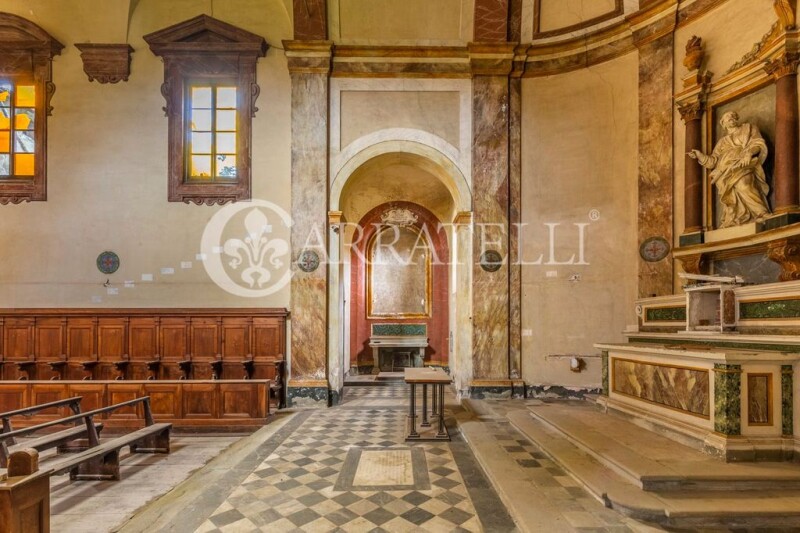 Splendid old hamlet of about 5700 sq. m. total with ancient Abbey to be restored and 54 hectares of land nestled in the hills overlooking the entire Mugello valley. Description Rich in history and charm, the main body for 3200 square meters total consists of the important Medici Abbey of 3206 square meters rich in history, art and charm where there is the ancient church of 571 square meters, the monks' quarters in addition to the rooms for practices and daily monastic life and the remains of the ancient cloisters supported by beautiful fifteenth-century columns and capitals. There are still ancient barrels and tools used by the monks for the production and storage of wine and oil. Adjacent are the various outbuildings totaling 2,500 square meters and there is also a historic and evocative underground passage connecting the abbey with one of the outbuildings. The abbey dates back to the year 1084, built by Count Hugh of Tuscany, who, lost in those woods, would have vowed to erect it if he had been saved. Belonging for many centuries and generations to the Medici family, in the early 1700s the monastery was completely restored by Grand Duke Cosimo III, who entrusted it to a community of Trappists, and in Buonsollazzo or "Buonsolatio" the first "Trappa" in Italy was founded, to reach the latest times, when in the Abbey the Camaldolese established a college there, in which several generations of monks received their first training. The name "Buonsollazzo" comes from the Latin bonum solacium or "Buonsolatio," which expresses good exposure to the sun. Outdoor Spaces The complex is immersed in its own private land of no less than 54 hectares of woodland and arable arable land and enjoys a beautiful view of the Mugello valley. Condition and finishes Most of the property is built with traditional materials and finishes such as brick and stone, generally terracotta floors and wooden fixtures. The monastery is in need of careful restoration and conservative rehabilitation work, and the other parts alternate between needing functional upgrades and renovations or building renovations. Potential uses The enchanting property lends itself well, through major and careful restoration, both to a sumptuous private residence and to an impressive and impressive luxury accommodation facility. Given the possibility of obtaining EU funding, given the peculiarity of the complex, given the pre-existence of a tourist-venatorial activity even if amateur, given the likelihood of expanding said activity by merging neighboring lands, a club-house with accommodations could be built in the Church and Monastery, in the annexes other and numerous accommodations, a restaurant and a hunting lodge. Location Strategic location along the Via degli Dei, a renowned road that joins Bologna and Florence, in the heart of the Florentine countryside, a few minutes from the town of Borgo San Lorenzo and a short distance from the renowned cities of Florence and Siena as well as from the fascinating resorts of Chianti Classico.