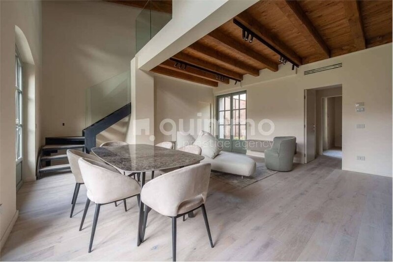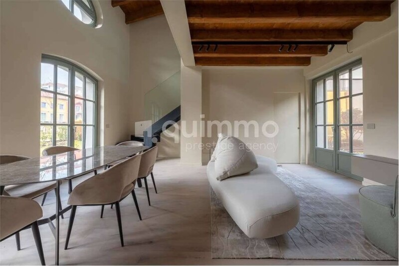 "Forrest in Town, the new residential complex designed by DFA Partners, is located in the San Cristoforo sul Naviglio neighborhood, one of the historic districts of Milan, adjacent to the Naviglio Grande. This significant redevelopment project reinterprets the ancient courtyard typology in the style of old Milan, focusing on environmental sustainability and personal well-being. It creates an extraordinary green oasis that harmonizes the convenience of city life with the tranquility of nature. An internal courtyard, reminiscent of a small historic village, features a 4,500 square meters garden designed with three lines of cultivation dedicated to aeroponic agriculture, planned by the Italian company Agricooltur. In this exclusive country-chic atmosphere, we offer for sale a charming fully furnished apartment on multiple levels, totaling 175 square meters, with a private garden, patio, and dedicated terraces. The bright double-height living space generously welcomes natural light and overlooks the privately owned garden and the secluded inner patio furnished with an elegant table and chairs. The minimal open kitchen integrates into the living area, serving the beautiful marble dining table. An ideal space for enjoying convivial moments outdoors, offering a perfect blend of internal comfort and the beauty of outdoor spaces. The first bedroom with a dedicated bathroom faces the patio, providing a picturesque view. The rustic charm of exposed wooden beams with contemporary design creates a cozy and unique atmosphere. A modern staircase, characterized by the use of glass, leads to the first floor where we find the studio, illuminated by natural light from oval windows, offering an inspiring space for creativity and concentration. The master bedroom with a private terrace for a tranquil oasis is enhanced by a spacious closet and a beautiful bathroom. A welcoming and intimate environment, ideal for relaxation and rest. The spacious 57 sqm basement allows numerous customization possibilities for a space dedicated to passions and personal entertainment, flexible for use as a living area, home theater, gym, or guest area. It includes a bathroom with a laundry area, ensuring a private and personalized retreat in the heart of the home. Every detail has been carefully curated, ensuring a welcoming and classy environment. This combination of modernity and traditional elements makes this residence a unique place where the beauty of nature and the comfort of modern living harmoniously merge. The property is completed by two parking spaces. The beautiful residential complex offers its residents access to a modern communal gym and an exclusive garden. Asking Price: €1,500,000 + €100,000 for the two parking spaces Commission: 3% + VAT".