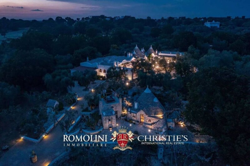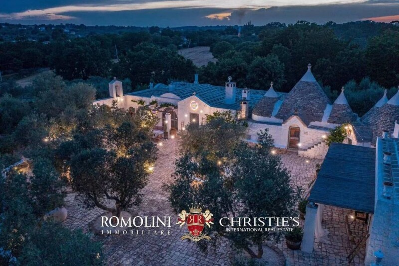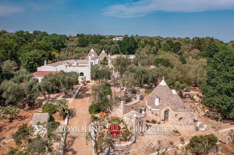 This masseria with trulli is set in the Apulian countryside between Ceglie Messapica and Martina Franca. The buildings (roughly 260 sqm in total) house a total of seven bedrooms, six of which are reserved for the guests and one for the owners. The outdoor spaces include a beautiful stone-paved courtyard ideal for events and a garden crossed by walkways leading to the 12 × 8 m swimming pool that recalls the shape of a natural lake. Services are all available in the town of Ceglie Messapica (3km; 5') and notable centers of Apulia can be reached in just a few minutes. DESCRIPTION OF THE BUILDINGS The masseria is made up of a master house and four guest bedrooms with private bathroom. The main door opens into an entrance room that also doubles as an office space with its own bathroom. From here one can then enter the spacious living room with vaulted ceiling. This elegant room is connected on one side to the kitchen with dining area and a sitting room that leads in turn into a bright breakfast room for the guests. Along the longest side wall, the living room leads to a library (easily converted into a bedroom) and, via a corridor, into the master bedroom with its own private bathroom and a generous walk-in closet. Right next to the owner’s house are two trulli: the bigger one features a bedroom with a small sitting area in an alcove and a bathroom, while the second one is just a cozy bedroom with its own bathroom. At the end of the building, a dependance houses two more bedrooms with their own private bathroom. At the rear of the masseria are a small storage room and a series of steps leading underground, right under the building, where one can find a natural grotto currently used as a steam room or Turkish bath. Just outside the main complex are two independent buildings made out of local stone. Nowadays, both of them house a bedroom with bathroom for the guests: the first one is the oldest trullo of the property, dating back to the 1780s, while the second one has been converted from the old water cistern. STATE AND FINISHES The property has been finely restored by the current owners, preserving its rustic charm but featuring high-quality finishes that make the property warm and welcoming. In particular, the trulli have been plastered and painted white inside so that light entering from the small windows and the glass door can easily diffuse inside the building. The masseria still boasts the original vaulted ceilings, that have left exposed without plaster, while the trulli have been restored keeping the original stones visible in a few points to showcase the technique that was used to build these typical Apulian houses. EXTERIORS The masseria sits at the center of a 1.7-hectare podere, covered for the most part in gardens and green areas. The building revolves around a spacious paved courtyard, ideal for events and pleasant al fresco moments. The garden enriching the property is dotted with trees and brushes typical of the Mediterranean area, succulent plants and olive trees, typical of the Apulian countryside. These trees can produce between 200 and 300 liters of olive oil per year. In a quiet and private position north-east from the buildings, is the saltwater 12 × 8 m swimming pool. The basin has an irregular shape that closely resembles a natural pond and the white color of the bottom creates a very charming atmosphere even at night thanks to the lighting system installed. Around the pool is a very relaxing massage area. At the entrance of the property, just on the left, is a convenient graveled apron that allows guests to securely park their cars during their stay. CLOSEST CITIES AND TOWNS Ceglie Messapica (3km; 5’), Ostuni (14km; 20’), Martina Franca (15km; 15’), San Vito dei Normanni (21km; 25’), Locorotondo (22km; 25’), Alberobello (30km; 35’), Monopoli (45km; 45’), Taranto (51km; 45’), Brindisi (55km; 45’), Gioia del Colle (61km; 1h 5’), Bari (86km; 1h 20’), Matera (90km; 1h 30’), Altamura (97km; 1h 35’), Gallipoli (125km; 1h 25’) CLOSEST AIRPORTS Aeroporto del Salento (51km; 40’), Bari Wojtyla (105km; 1h 30’), Crotone Pitagora (305km; 4h 10’), Lamezia Terme Sant’Eufemia (321km; 3h 45’), Napoli Capodichino (345km; 3h 50’).