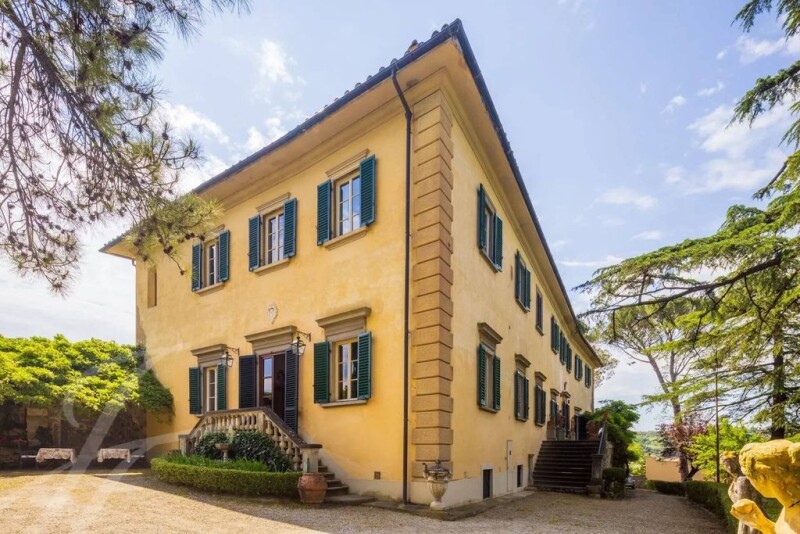 This historic villa, located near the center of Florence, boasts stunning views of the Certosa and sits atop a hill near Arcetri. Accessible via a tree-lined avenue, the villa welcomes you with an elegant Italian garden at the main entrance. Dating back to the 15th century, this villa is free-standing and spans three levels, totaling 1,130 square meters. The first floor, accessible through a spacious panoramic terrace, features an impressive entrance adorned with coffered ceilings and fine stone elements. On this level, you'll find grand reception rooms, a game room, a large dining hall, and a unique kitchen area with a sizable pantry. Additionally, there's a utility room and another room with a distinctive second access to the outside. The second floor hosts a spacious and bright TV lounge, dividing the floor into two extensive sleeping areas accommodating 7 bedrooms, nearly all with en-suite bathrooms and various wardrobe spaces. A panoramic terrace crowns the rooftop, offering breathtaking views. On the ground floor lies a spacious cellar with vaulted stone and brick ceilings. This space, currently used as a recreational and service area, holds the potential to become a beautiful extension of the residence or a unique standalone dwelling. The villa's interiors include original high-quality materials such as terracotta, marble, stone, coffered ceilings, complemented by original fireplaces, unique fabrics, and antique furniture. Completing the property is a vast wooded park spanning over 5500 square meters and a rooftop terrace with a panoramic view over the landscape.