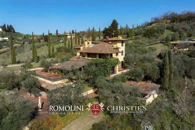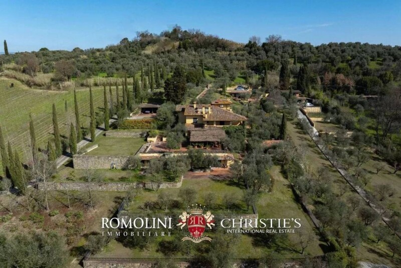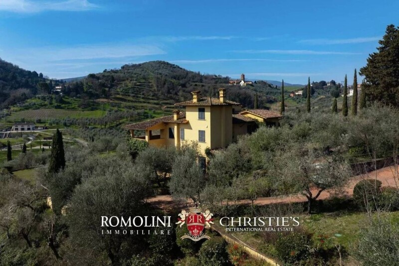 On the hills of Tuscany, between Carmignano and Poggio a Caiano, country villa with vineyard for sale. The property consists of a large main villa, two guesthouses and several garages for a total of more than 1,000 sqm that could be exploited either as a luxury private home or as an accommodation business. An English-style park of 15,500 sqm, olive grove (458 trees) and IGT vineyard (1.5 ha) complete the property. The location of the property is very convenient, accessible directly via paved municipal roads, and has all the necessary services in the nearby towns of Carmignano and Poggio a Caiano, both less than five minutes away by car. The location in the Florentine countryside also ensures a quick connection to much of Tuscany and its cities of art (Florence, San Gimignano, Siena, Volterra...). DESCRIPTION OF THE BUILDINGS The villa (674 sqm – 7,252 sqft, 7 bedrooms and 7 bathrooms) is a large building on four staggered floors, entirely restored in 2001: • Lower ground floor: entrance hall, kitchen, two bedrooms, two bathrooms, technical room, laundry room and cellars; • Upper ground floor: entrance hall with porch, large living room with terrace, dining room and bedroom with private bathroom; • First floor: hallway and three bedrooms with private bathroom; • Second floor: bedroom with bathroom and attic with exit to the terrace. Guesthouse A (133 sqm – 1,431 sqft, 2 bedrooms and 2 bathrooms) is structured on one floor and is currently divided into two independent apartments: • Apt. N°1 (71 sqm – 764 sqft): living room, kitchen, bedroom and bathroom; • Apt. N°2 (62 sqm – 667 sqft): living room, kitchen, bedroom and bathroom. Guesthouse B (45 sqm – 484 sqft, 1 bedroom and 1 bathroom) is located immediately behind the villa, just beyond a paved yard, and consists of living room with kitchen, small sitting room, bedroom and bathroom. A wine cellar (83 sqm – 893 sqft), a garage (63 sqm – 678 sqft) and two carports (108 sqm – 1,162 sqft) complete the property. The villa is surrounded by a beautiful park of 15,500 sqm, well-maintained and distributed on terraces that allow to make the most of all the available surface. Access to the property is directly from the municipal road through two gates that lead directly to the garages. Downstream from the house, following a tree-lined road with cypresses, one reaches the 18 × 7 m swimming pool with terracotta sunbathing area. EXTERIOR Agriculturally, the farm can count on a SuperTuscan IGT vineyard (1.5 ha) for the production of 5,000 bottles of wine per year and an olive grove (about 1.0 for a total of 458 trees) that allow the production of an excellent extra virgin olive oil. The wine is sold, in addition to the domestic market, in the United States where it is on the wine list of several California restaurants. CLOSEST CITIES AND TOWNS Carmignano (2km; 5’), Poggio a Caiano (3km; 5’), Prato (14km; 15’), Florence (24km; 25’), Pistoia (28km; 35’), Montespertoli (29km; 40’), San Casciano in Val di Pesa (32km; 45’), Vinci (38km; 45’), San Gimignano (61km; 1h 15’), Lucca (66km; 1h), Pisa (74km; 1h 15’), Colle di Val d’Elsa (75km; 1h 10’), Siena (99km; 1h 25’) CLOSEST AIRPORTS Firenze A. Vespucci (18km; 20’), Pisa G. Galilei (72km; 1h), Bologna G. Marconi (104km; 1h 30’), Perugia San Francesco (191km; 2h 25’), Roma Ciampino (318km; 3h 30’), Roma Fiumicino (332km; 3h 35’).