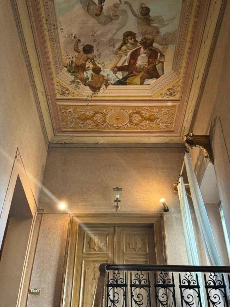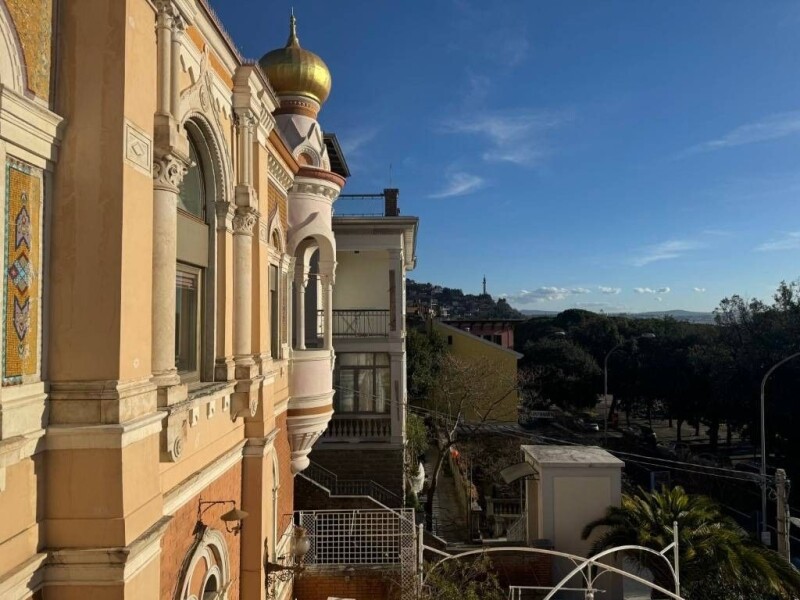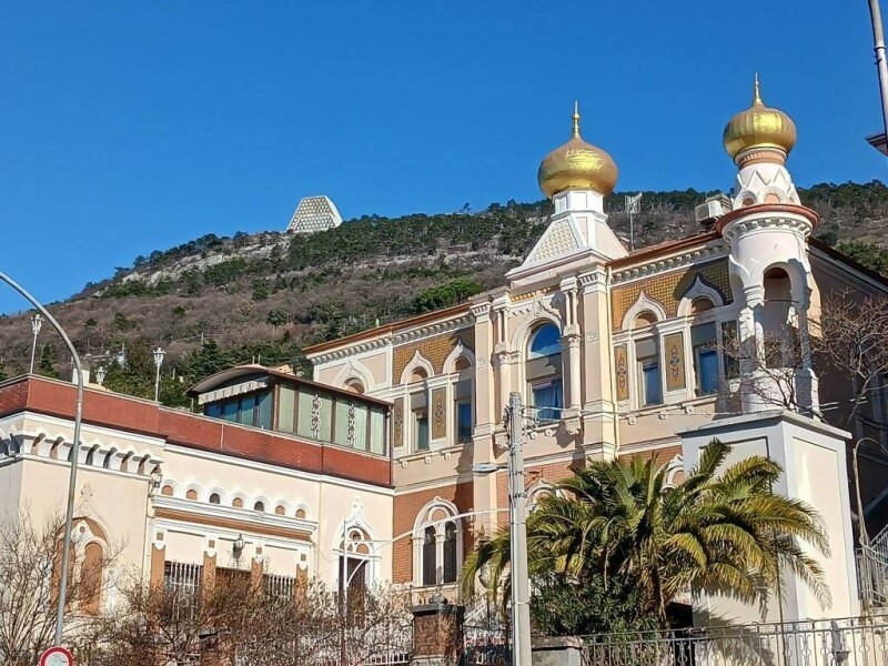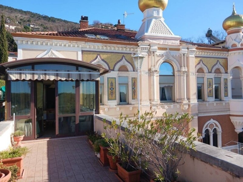 In front of the Pineta di Barcola, in the historic and prestigious Villa Jakic, the so-called “Villa delle Onion”, we offer for sale an exclusive apartment in a residence with a unique charm, characterized by its eclectic architectural style with Russian-Byzantine influences. The villa, enriched by valuable elements, such as the characteristic golden domes, mosaics and artistic decorations, represents a perfect combination of historical elegance and exclusivity. The apartment internally consists of a large entrance hall with dressing room, a kitchen with a convenient pantry, a bright living room of approximately 60 square meters with a fireplace and a large and comfortable veranda that leads to the large terrace overlooking the Pineta, a double bedroom with private bathroom with window, a further room of 20 square meters with its particular loggia, a further bathroom with window and a closet. Possibility of purchasing a parking space in the garage in the same building.
