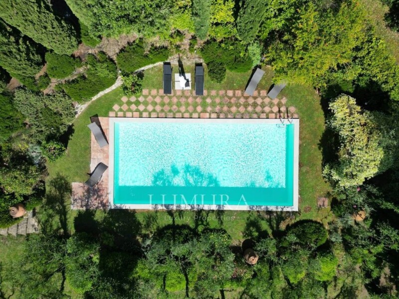 EXCLUSIVE LUMURA: Splendid villa for sale in Lucca in a unique position on the first hills. Its excellent south-west exposure gives it light and sun all day. The garden, with attention to every detail, is completely fenced and measures 5000m2: it houses a beautiful 12x6m salt swimming pool surrounded by olive trees and cypresses. All around the villa there are terraces and loggias to fully enjoy the view of the surrounding hills. Internally the villa measures approximately 450 m2 on three floors, two of which are above ground and one in the basement. The large interior rooms are flooded with sunlight from morning to night. The ground floor consists of a large entrance hall, huge kitchen with dining table and exit to the dining table in the garden, utility room, dining room, large double living room with fireplace and exits to the garden, service bathroom. The first floor is accessed via a beautiful wooden staircase and we find: 4 large bedrooms and 3 bathrooms. Two bedrooms have direct access to the panoramic terraces. The basement also enjoys excellent brightness thanks to the large glass doors that access the garden and we find: large living room with dining area, kitchen and TV corner all in a single open space room, study, closet, laundry room and bathroom. Outside there is a large square for parking. Heating with city gas, water connected to the municipal aqueduct. Internal photos only upon concrete interest.