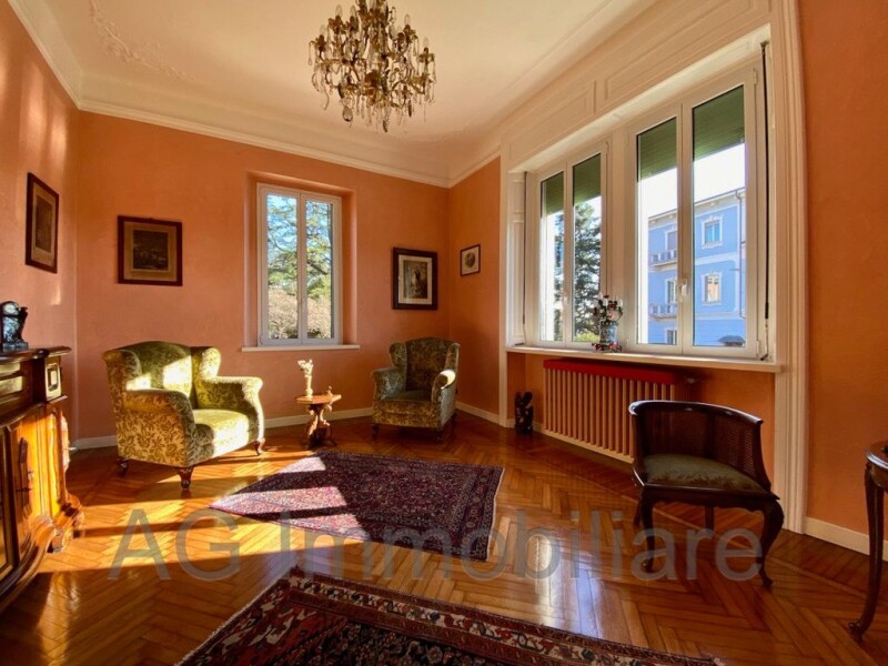 Located in the center of Verbania, we sell a beautiful period villa dating back to the early 1900s, completely and finely renovated about 20 years ago. The villa is in perfect maintenance conditions and develops on one floor and is composed as follows: entrance to the living area where we find on the right and on the left two large rooms used as a living room and lounge or eventually like a double room with originals wooden floors and 3,5 meter high ceilings with beautiful original stuccoes. Following we find the kitchen connected to the dining room and the guest bathroom in the corridor. Large hallway room which leads to the entrance of the wide double bedroom and to the private bathroom with bathtub. At the rear of the villa there is a large porch with an ancient skylight to enjoy lunch or dinner outdoors in total privacy. Possibility to close this space for like livable or a winter-garden to expand the surface of the real estate over 40 square meters. In the ground floor connected by an internal staircase we reach a big tavern/fitness area, large hallway and a boiler/laundry room with shower for the garden. Wide garage for two cars with electric door. Beautiful outside area with english grass which gives this property the elegance appropriate to its class which gives this property the elegance appropriate to its class. Perfect and unique all the conditions of the property immediately available and livable. Possibility to build a swimming pool in the back of the garden. Class:E;Ipe 279,83kWh/m2.