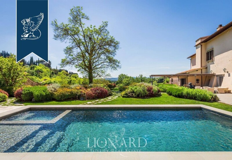 This historical villa is in Florence's prestigious Poggio Imperiale area, just 4 km from Florence's International School. This 15th-century estate measures 600 sqm and is part of a large former convent. The restoration of the building has maintained most of the original features, including some beautiful vaulted ceilings, stone fireplaces and frescoes. This beautiful villa has three levels. The ground floor houses a spacious living area with three very bright rooms. At one end are the spare bathroom and a laundry room. On the opposite side of the building, we find the stairwell, a kitchen with a pantry and a dining room with an exit to the garden. The cellars now house a private gym with a guest bedroom and en-suite bathroom. From the ground floor, halfway up the staircase, we reach a bedroom with a private bathroom. Continuing on, we then reach the first floor, characterized by more noble and elegant rooms. The hallway leads to a bedroom with a private bathroom and a walk-in closet on one side, and a living room with a fireplace on the other. From here, we then pass through a corridor to reach the master bedroom, complete with a big en-suite bathroom and a private walk-in closet. The attic that houses the last bedroom with a bathroom and walk-in closet. This enchanting property includes a 2,500-sqm private garden, surrounded by a wall and very private, with a splendid designer swimming pool, a sunbathing area, and a fountain created by architect Bernardo Buontalenti in the 1580s. This prestigious estate is completed by an elevator and a parking area with four parking spaces. Ref: 9733.