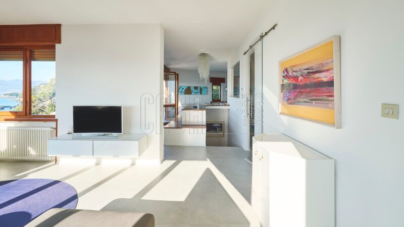 Villa for sale on the Fiascherino beach a short distance from the villages of Lerici and Tellaro. Located in an exclusive and panoramic position, this splendid villa offers a breathtaking view of the sea. Immersed in the charm of the Ligurian coast, the property is in a perfect position being in the beautiful bays of Fiascherino. This elegant villa, developed on three levels, has been designed to best enhance the spectacular sea view. The rooms, bright and welcoming, are characterized by fine finishes and modern style details. The main floor welcomes guests with a spacious entrance that opens onto a large living area completely with windows overlooking the sea, with southern exposure, which make this environment unique. Then we find the dining area, also very bright and panoramic with access to the terrace and the eat-in kitchen, recently renovated. A bathroom and laundry area complete the floor. On the lower floor there is the master bedroom with two French windows overlooking the sea, with wardrobe area and en-suite bathroom, and another bedroom also with en-suite bathroom. Going down one more floor there is the third bedroom also with en-suite bathroom. The villa will be sold partially furnished with original designer furniture from the 70s. One of the unique features of this property is the short staircase that leads to the sea, having direct and private access to the Fiascherino Bay. The roof features a large terrace overlooking the entire gulf, ideal for creating an outdoor living area. A small garden, a cellar and two private parking spaces complete the property.