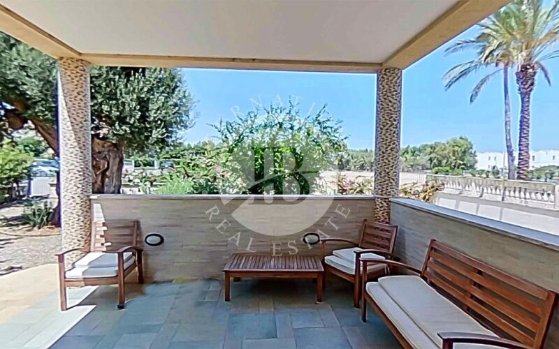 In Savelletri, just 200 meters from the sea and the prestigious San Domenico Golf, an independent villa is for sale, spread over two levels and surrounded by an exclusive garden of approximately 600 square meters, enriched with olive and carob trees. On the ground floor, the property is accessed through a spacious veranda leading to a large living area with an open-plan kitchen and a bathroom. The living area is complemented by an additional veranda and a rear courtyard. An internal staircase, with provisions for an elevator (to be completed), leads to the first floor, where the sleeping area is located. This includes a master bedroom with a private bathroom and veranda, as well as two additional comfortable bedrooms. From here, a staircase leads to the panoramic terrace, equipped with a laundry area. The basement consists of two large rooms, serviced by a bathroom and kitchen, with access to a courtyard on the same level. The villa is equipped with autonomous heating and air conditioning. The garden offers sufficient space for the construction of a swimming pool, making this property a unique opportunity for those seeking comfort and luxury in one of Puglia's most exclusive areas.