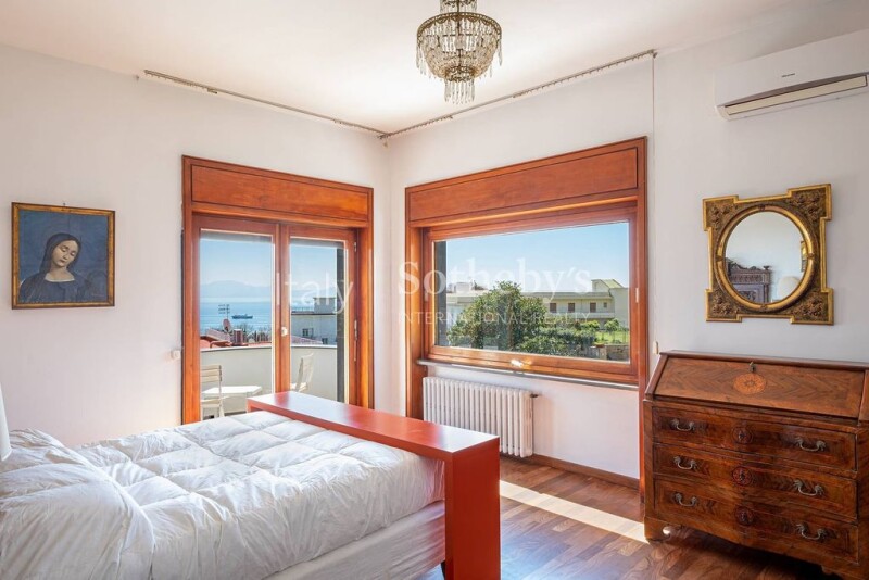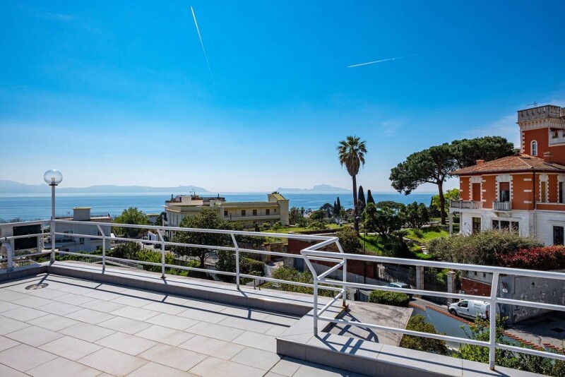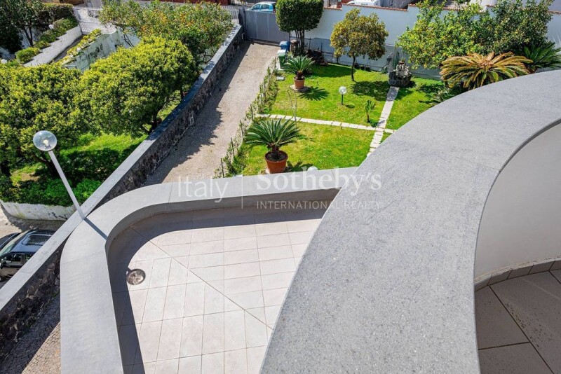 In the beautiful setting of Marechiaro in Posillipo, surrounded by greenery and near the sea, this beautiful villa is located. The property, totally independent, has two accesses, one pedestrian and the other driveway. The pedestrian entrance opens onto a large and spectacular terrace. From here you can directly access the well-structured representation area, consisting of a large living room with large windows, which give brightness to the environment, with a precious marble fireplace, a study to complete the living room and a panoramic dining room. The dining room connects directly to the kitchen and to a veranda. A guest bathroom completes the floor. An eclectic staircase leads to the upstairs sleeping area consisting of three bedrooms, each with its own bathroom. Of these, the master suite has an enviable view of Capri, and a connected wardrobe room. The villa is served on all three levels by a comfortable internal elevator. The ground floor, lower than the representative floor, is currently an independent apartment, consisting of a living room with fireplace and guest bathroom, kitchen, sleeping area with walk-in closet and bathroom. The other volumes on the ground floor, unused today, require renovation. The ground floor is completely surrounded by a wonderful garden. The villa also has an annex for service staff, a large garage and several parking spaces.