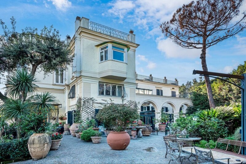 This impressive estate is nestled in a private park, stretching from Via Posillipo to the sea. The villa, boasting three levels, offers breathtaking views of the sea and Mount Vesuvius. Divided into three separate residential units on different levels, the villa is enveloped by a spacious private garden and a magnificent centuries-old park. The park extends to a stunning descent to the sea with exclusive access, limited to only two properties.